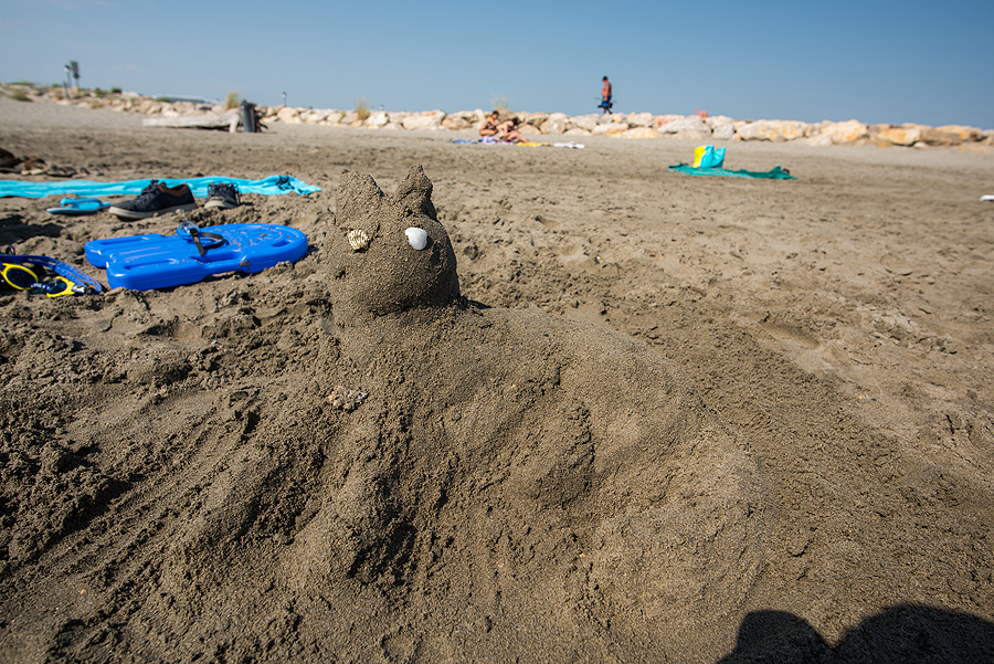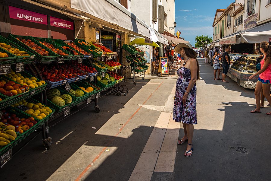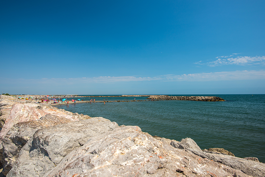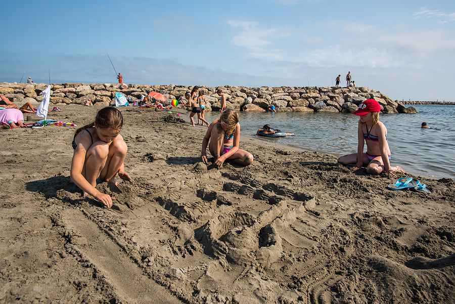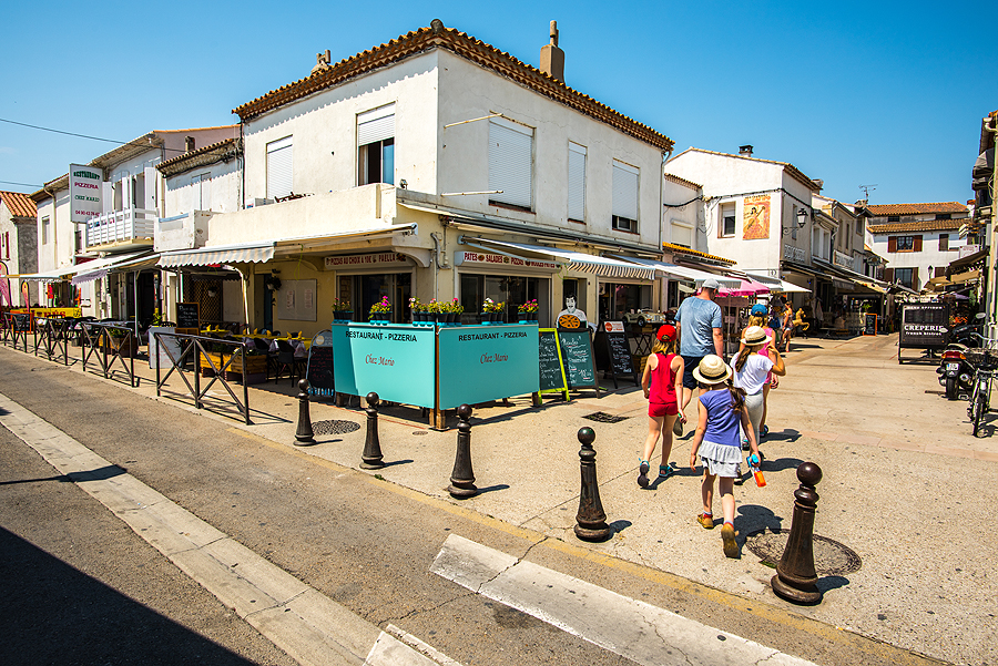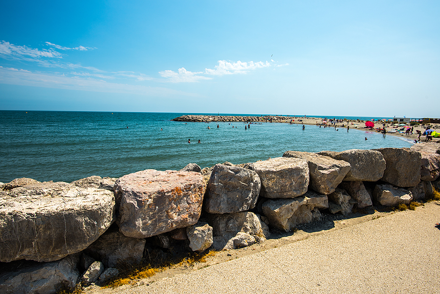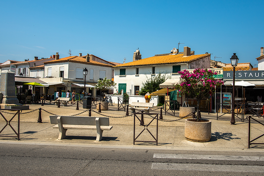 Išsiruošiame dviem ekipažais ir lekiame link prancūziškojo pajūrio. Važiuodami matome juodus bulius, kurie veisiami koridai, tik prancūziškoji korida švelnesnė už ispaniškąją, bulius nėra nužudomas. Krūmai, laukai - nei ežerų nesimato, nei mano išsvajotų flamingų, nei druskos kalnų. Pirmiausia einame apžiūrėti karščiu tiesiog tvoskiančio miesteliūkščio Saintes-Maries-de-la-Mer. Kadangi sustojame šalia pliažo, užmetam akį ir į jį, jis ilgas, žmonių yra, bet nesusigrūdę.