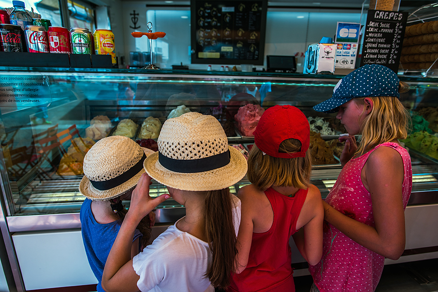 Vaikai atakuoja ledų vitriną.