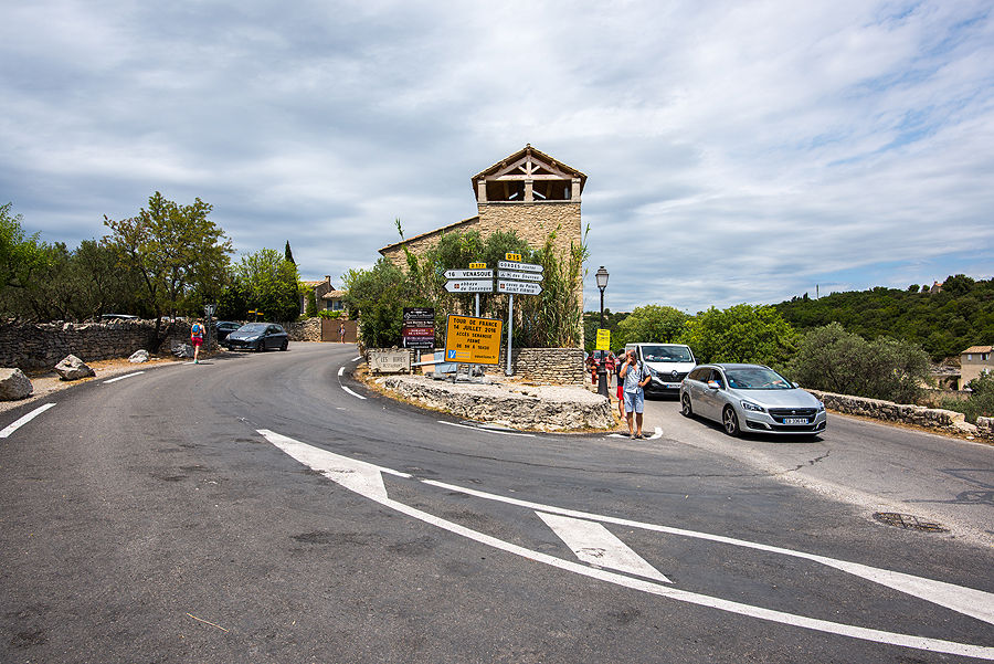 Čia užmatome, kad greitai vyks Tour de France dviračių lenktynės, nutariam sudalyvauti žiūrovų vaidmeny. Sankryža tarp abatijos ir Gordes. Pradžiai sukam į Gordes.