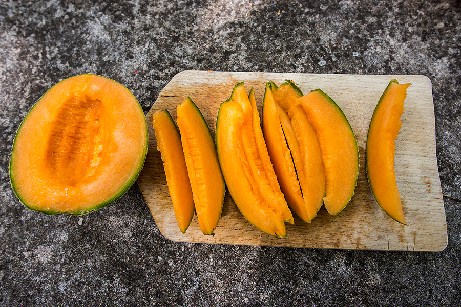 Susirandame gražią aikštelę su staliuku suvalgyti sultimis varviantį melioną.
