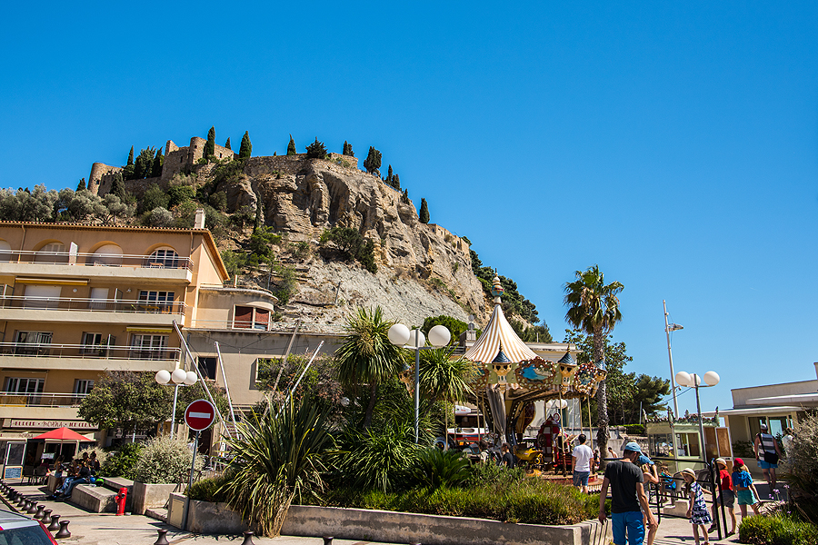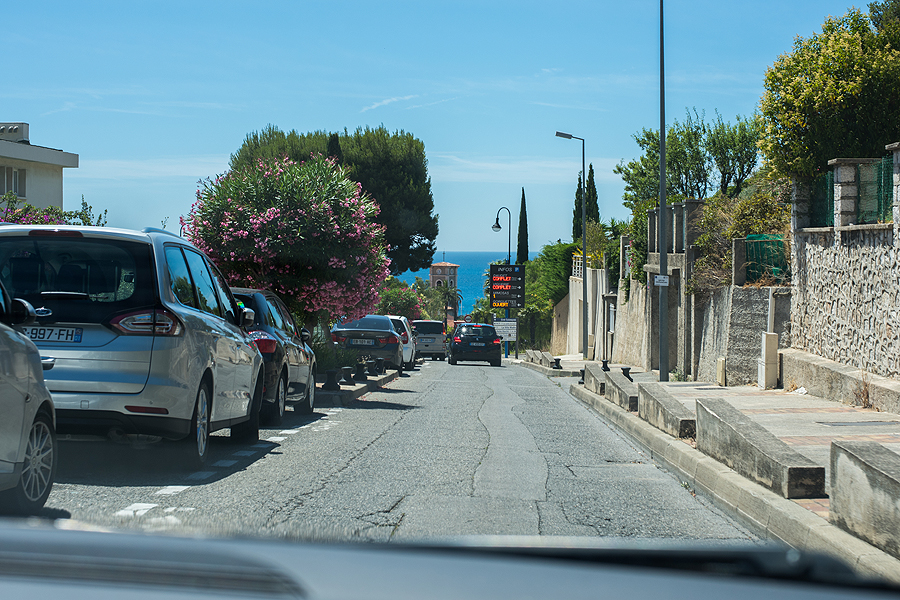 Traukiam link mašinų pro šurmuliuojantį jaukų Cassis.