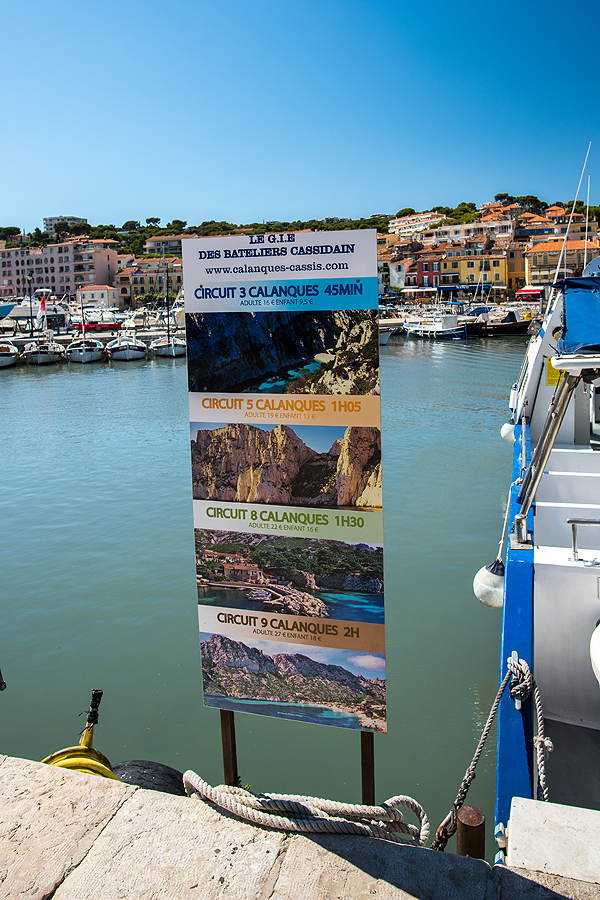 Uostas knibžda laivelių ir pasiūlymų aplankyti Calanques - nacionalinį parką, 20 km ilgio ir 4 km pločio aukštos baltas kalkakmenio uolas, matomas iš jūros pusės plaukiant laiveliu, suformavusios nedideles jaukias įlankėles. Iš Cassis siūlomi įvairaus ilgio plaukimo maršrutai.