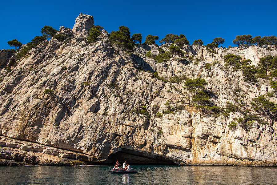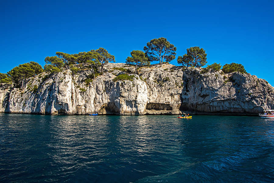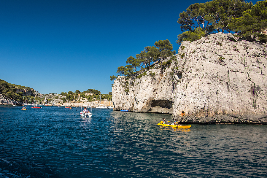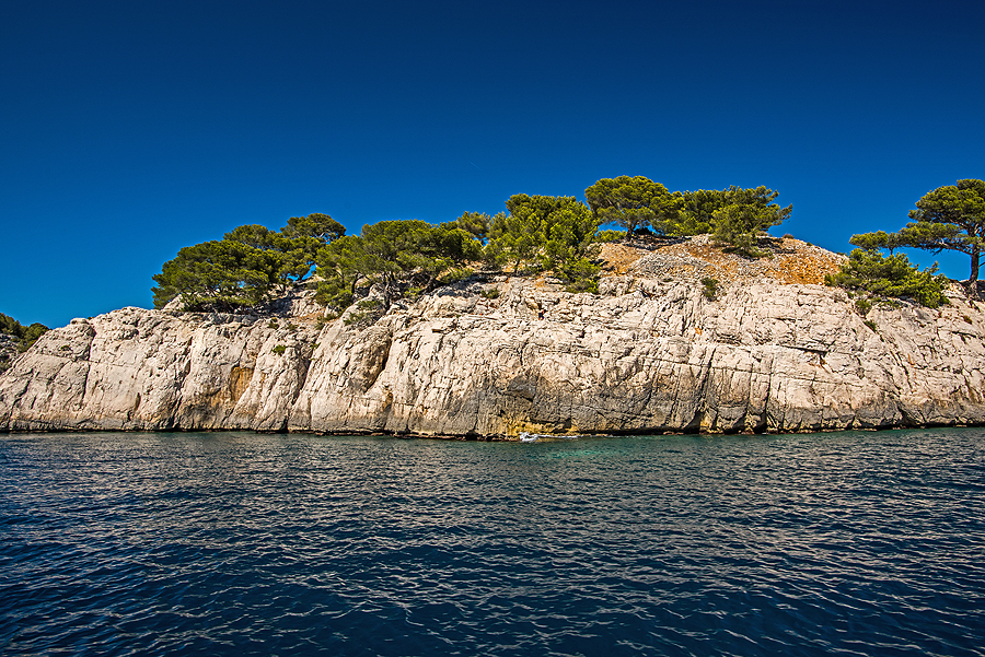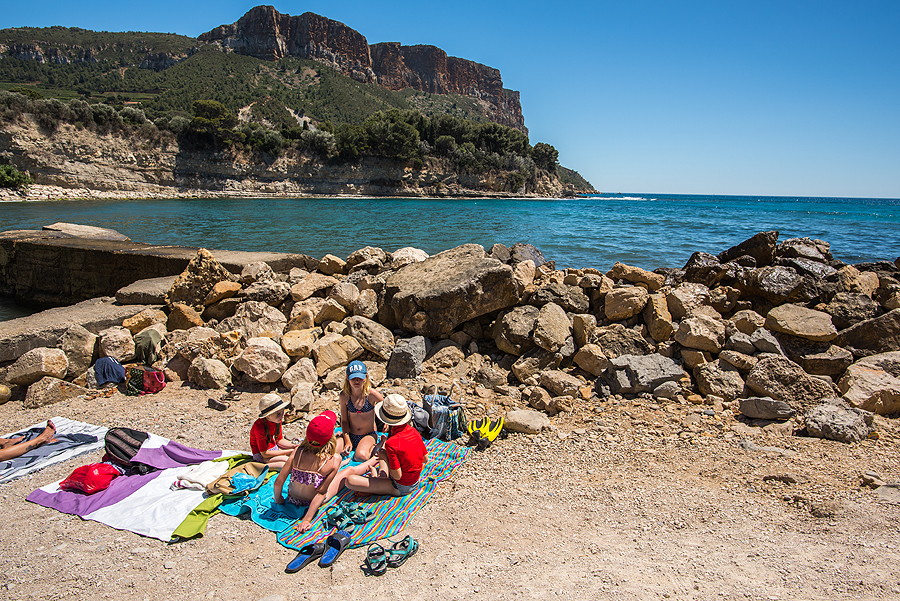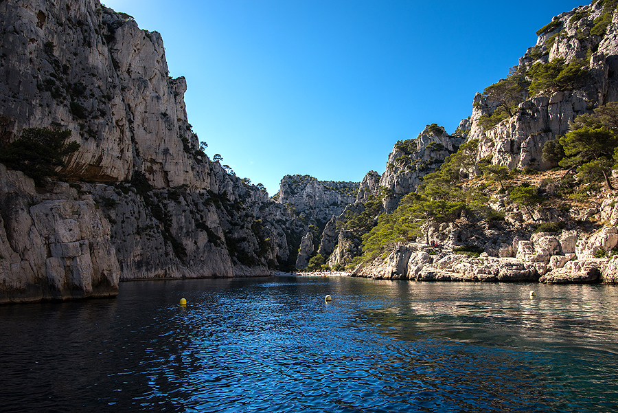 Prancūzijos fjordai. Gale šios įlankėlės - nedidukas paplūdimys. Aukštai yra ir ilga trasa pasivaikščiojimui ir parko apžiūrėjimui nuo sausumos, tik prancūzai visuose bukletuose pabrėžia, kad reikia gerai pasiruošti, norint eit, nes tas yra sunku, karšta, būtina pasiimti daug geriamo vandens ir apsiauti patogius batus. Uolos gražios ir įspūdingos, yra įvairios trukmės maršrutų, mes rinkomės vidutinišką ir kainos, ir laiko požiūriu pasiplaukiojimą.