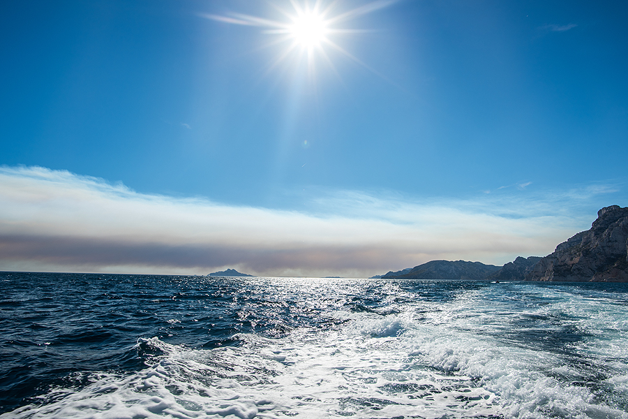 Sala netoli Marselio, bet pats Marselis slėpėsi už posūkio, iki kurio nebeplaukėme.