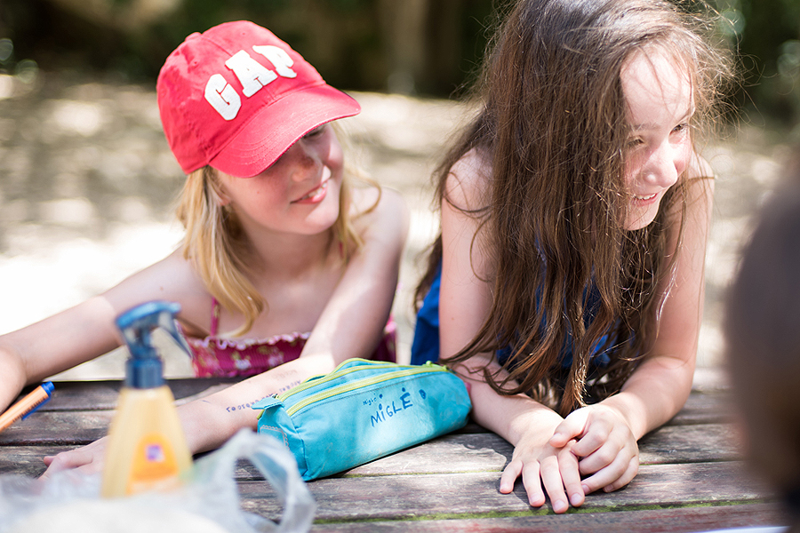 Prisilaipioję leidžiamės žemyn ir jungiamės šalia giminės, sėdinčios pavėsyje.