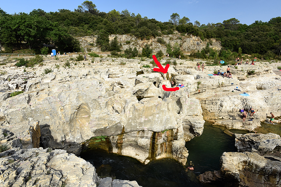 Sekantis taškas - Cascades du Sautadet - šiuose kriokliuose tikimės atsigaivinti. Bet pamačius plakatą, kažkaip noras atsigavinti susvyruoja. Ypatingai pavojinga maudytis, 30 mirčių nuo 1960 metų...