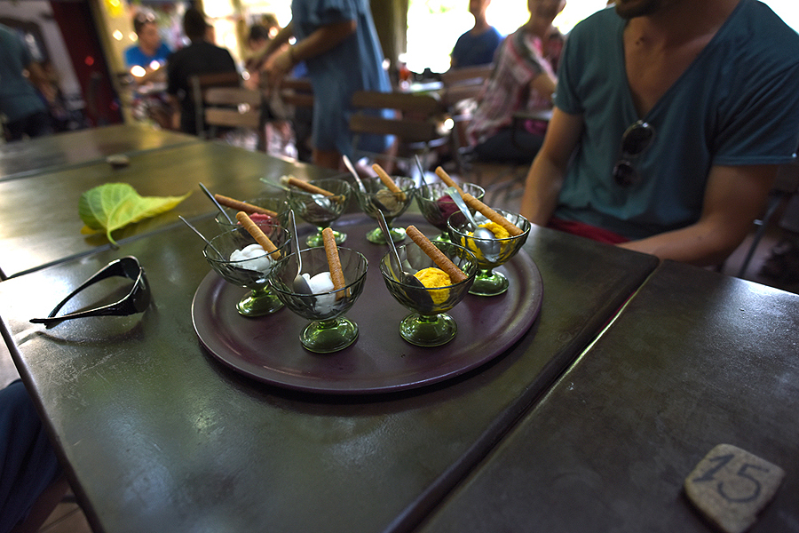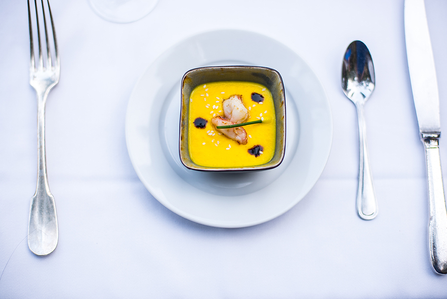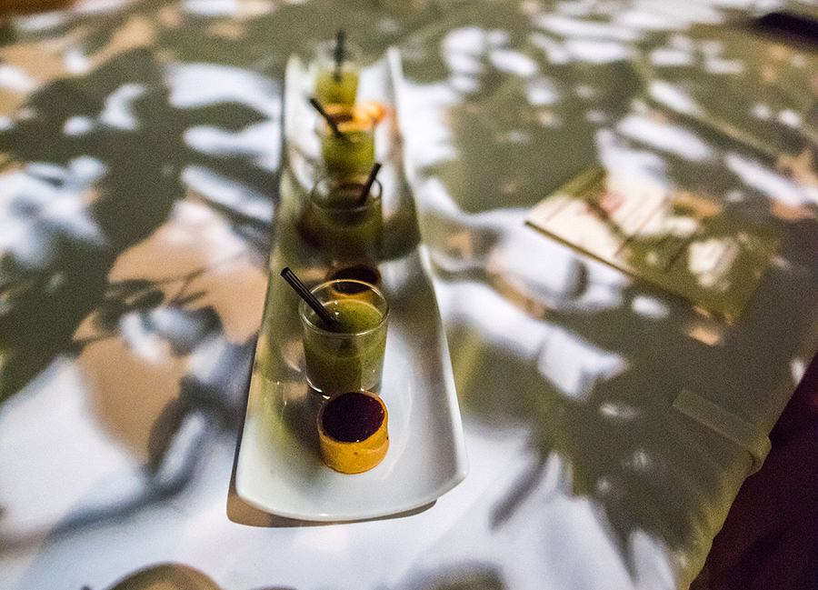 Imam meniu, yra pasirinkimas ir vaikams, ir suaugusiems. Pirmą kartą valgėme tokią gurmanišką vakarienę, kur visi patiekaliukai, o jų daug, žirnio dydžio ir gražūs.