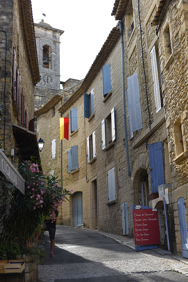 Sekanti mūsų pilis, į kurią ėjome jau tik mes, mano šeima, yra ne taip gerai išlikusi, bet nemokama. Šalia Châteauneuf-du-Pape miestelio buvome užsisakę vakarienę, tad pradžiai apžiūrime miestelį. O jis - tikras visų Provanso miestelių pavyzdys, šiltų kraštų augalija, čerpiniai stogai, kiparisai, jaukumo įsikūnijimas, veikia kavinukės, kvepia šviežiais kepiniais, ir, žinoma, yra pilis.