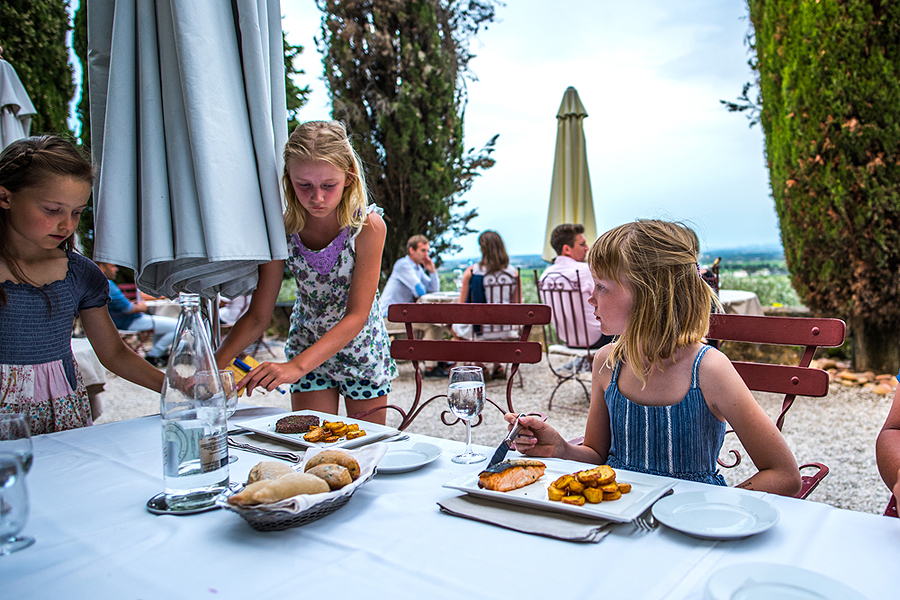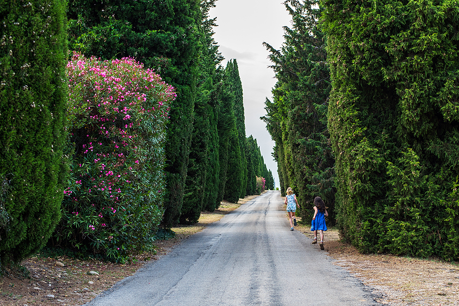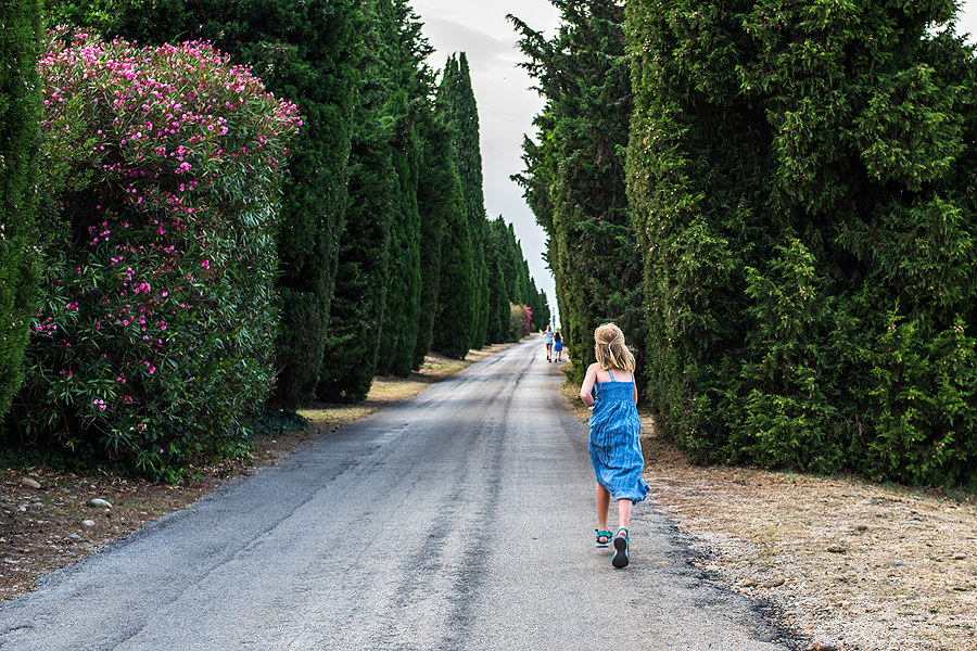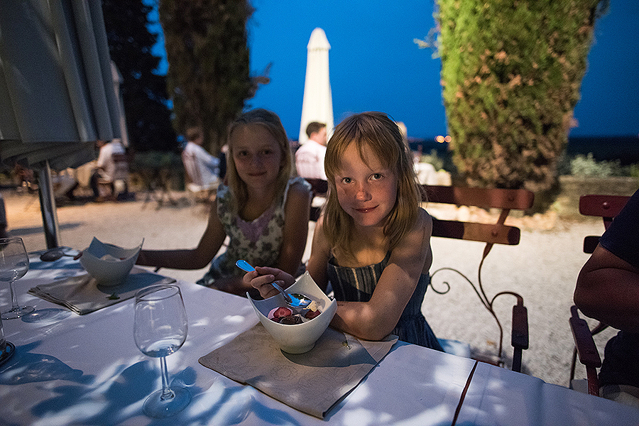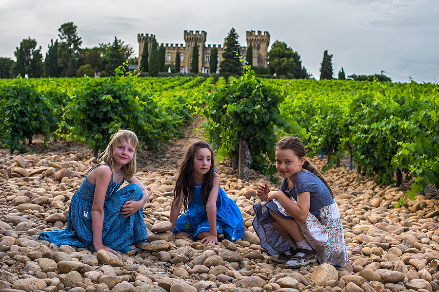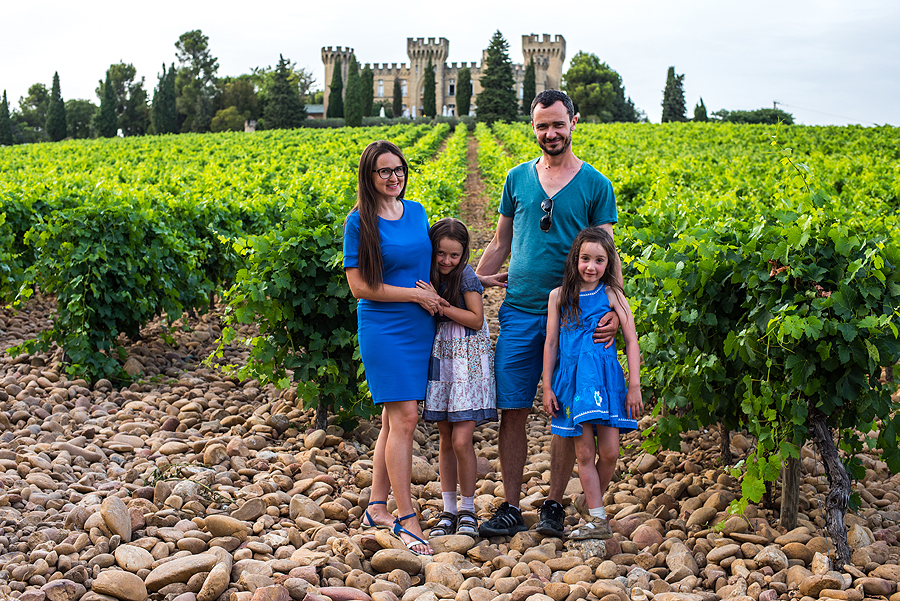 Toliau persirengiame ir važiuojame mūsų prabangiosios vakarienės į pilį šalia vynuogyno. Vaikai trumpam įlenda į sukneles.