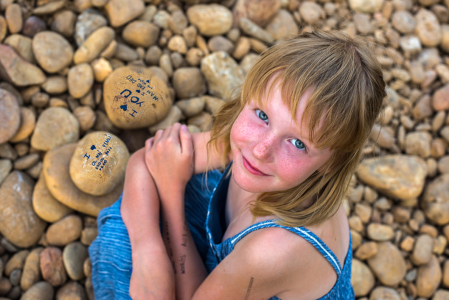 Mažylės menas ant akmenukų. Šiuos ir vežėmės namo - kaip kitaip.