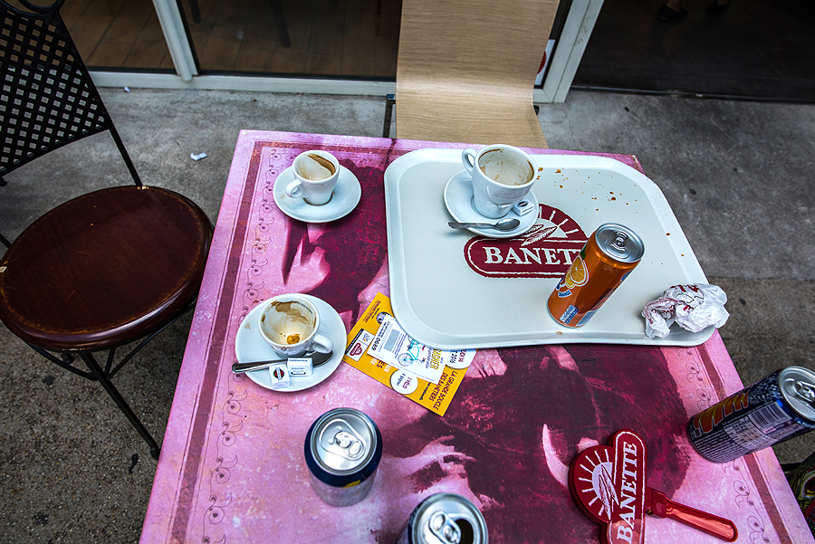 Prieiname jaukią gatvelę, šalia trasa - bet prisėsti neišeina, kažkas netinka prancūzams, ar kad norim tik kavos, o jie dengia valgymui, ar kas ten buvo - nesupratau. Keliam subines ir einam toliau.