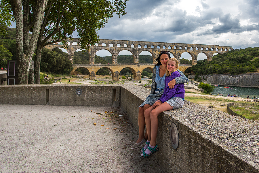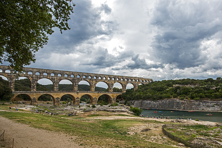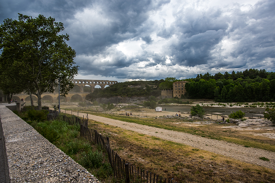 Šiuo 49 m aukščio ir 274 m ilgio akveduku buvo tiekiamas vanduo Nimes. Pastatytas romėnų ir įtrauktas į Unesco paveldo sąrašą, taip pat į visokius kitus sąrašus, kaip 100 gražiausių pasaulio vietų ir t.t.