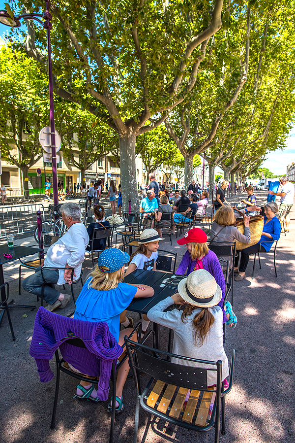 Pralėkus karavanui, dviratininkų dar reikia palaukti. Einame apžiūrėti Tarascon miestelio. Einam ir žavimės. Ramus, šiltas, jaukus, žinoma, su savo pilimi, teatru, kavinukėm, žmonių beveik nėra, atrodo, vaikštinėjam tik mes.