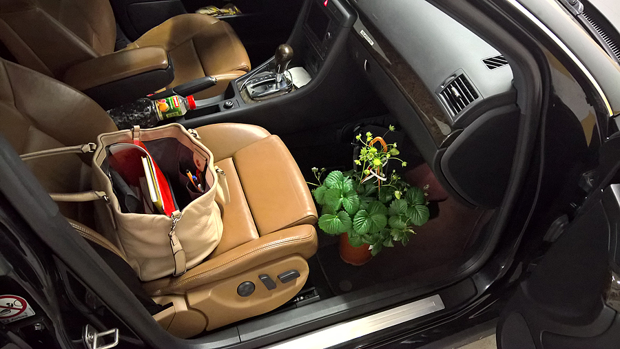Vaikai euforijoje - sukišam į mašiną, ir liepiam dar miegoti. Šalimais kaimynė lygiai tą patį daro su saviškėm dukrom, susimojuojam.