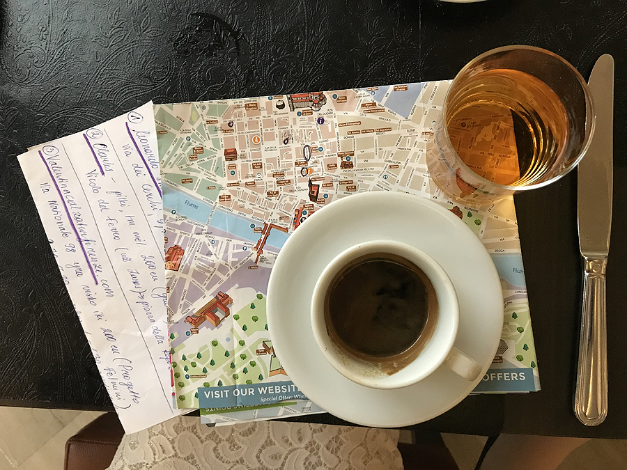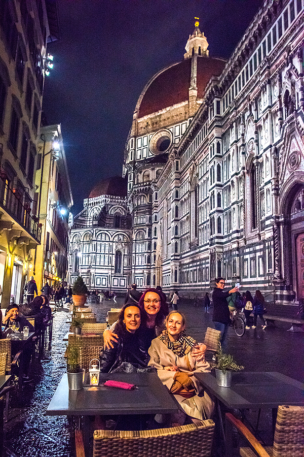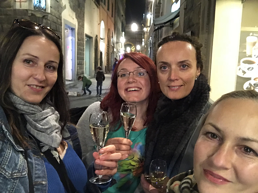 Iki išvykimo likus dienai susitinkame kavineje aptarti reikalų. Keturios moterys su vienu dušu, bus linksma. Tiek gerai, kad mąstom maždaug vienodai, Uffici galerijai ne daugiau dviejų valandų, shopingas irgi ne pagrindinis reikalas. Pagrindinis - pamatyti architekturą, daug fotografuoti ir ragauti skanėstus, gerti vyną. Super, man tinka!