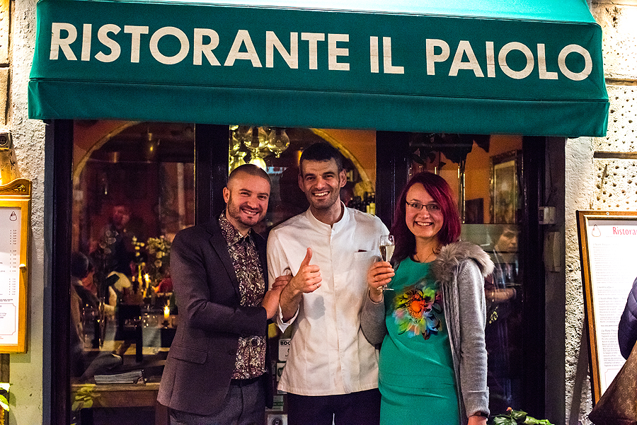 Atėjus merginoms, keliaujame ieškoti vakarienės. Tripadvisor rekomendacija nuvilia - daugiau bistro dienos metui, ne to mes ieškome. Pamačius jaukią tratoriją http://www.ristoranteilpaiolo.it/ , Elena klausia vietų. Vaikinas atsako, jog tuoj japonai baigs savo "dolce" ir staliukas turėtų greitai būti laisvas. Mums pataria ateiti kiek vėliau. Ką veikti? Ogi paėjus už kampo, fotografuotis.