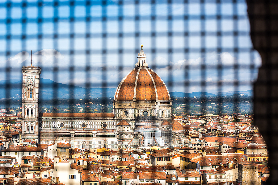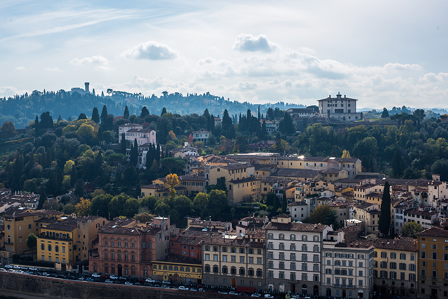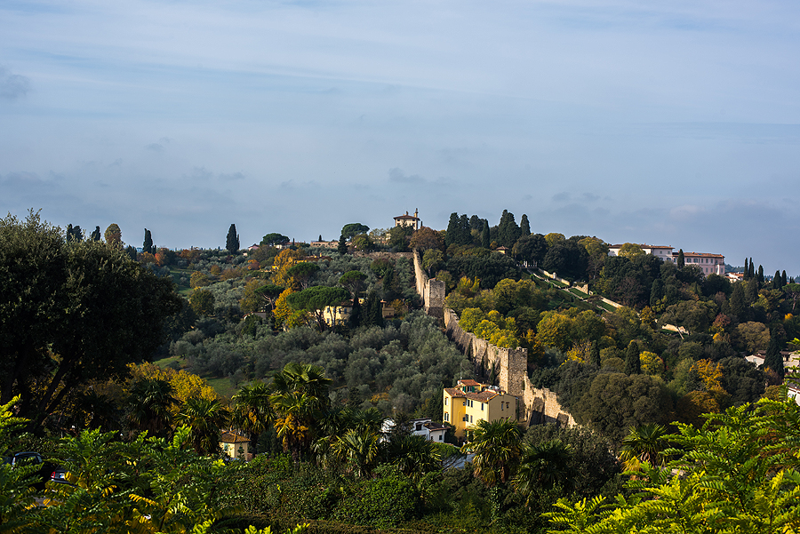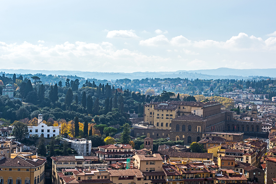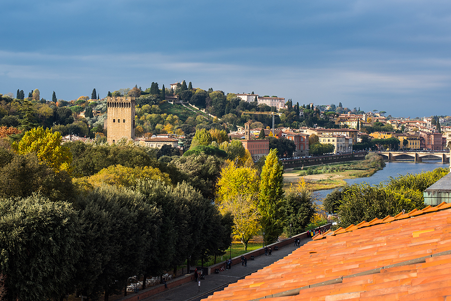 Šalia šiek tiek matosi Palazzo Pitti kompleksas, tai yra jo sodai.