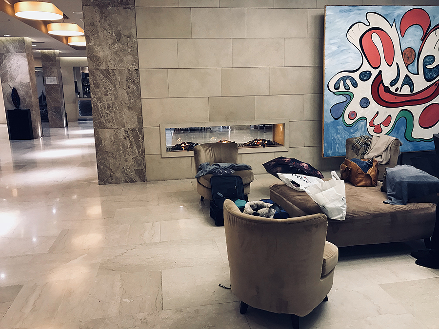 Nusiaubiam savo viešbučio fojė, nes iš kambario jau išsikraustėme. Personalas diskretiškas, toleruoja, nežvairuoja. Persirengiam tūlike, išsidžiovinam, išgeriam šiltų gėrimų ir išssikvietę taksi važiuojam į stotį.