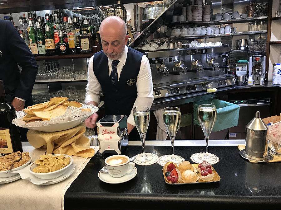 Grįžtam prie savo tratorijos, staliukas dar nelaisvas... užtat mums atneša po Proceso taurę. Laukti smagiau.