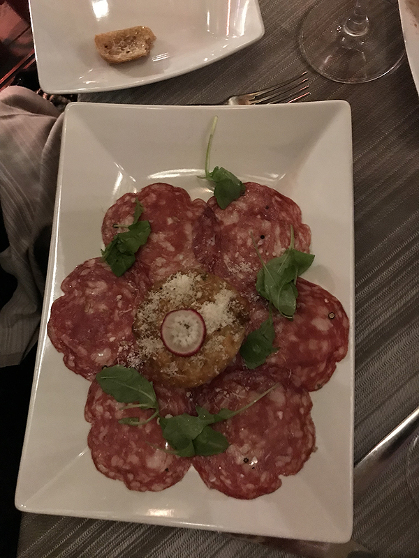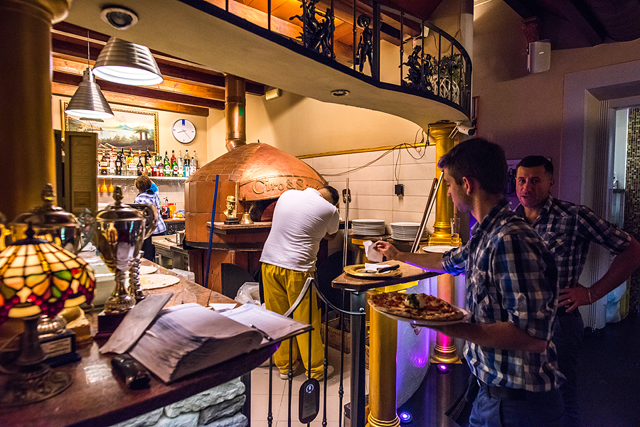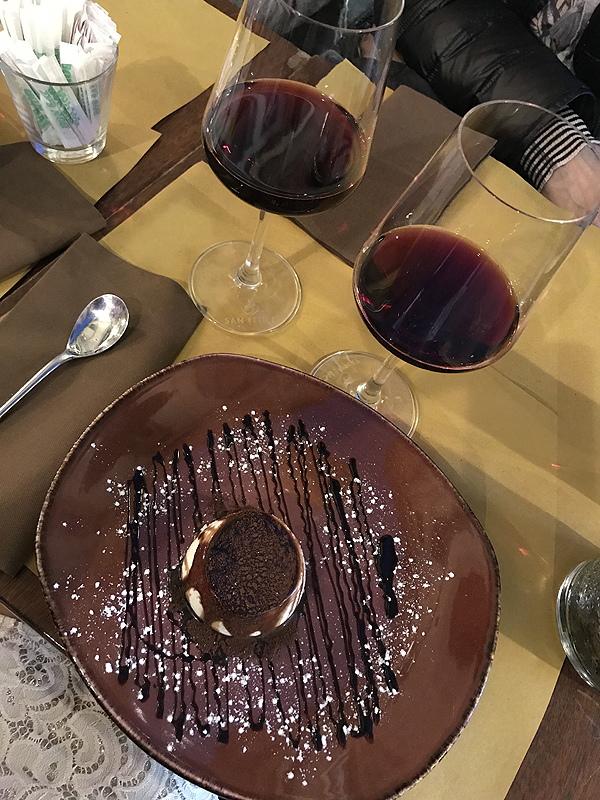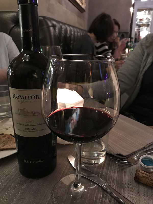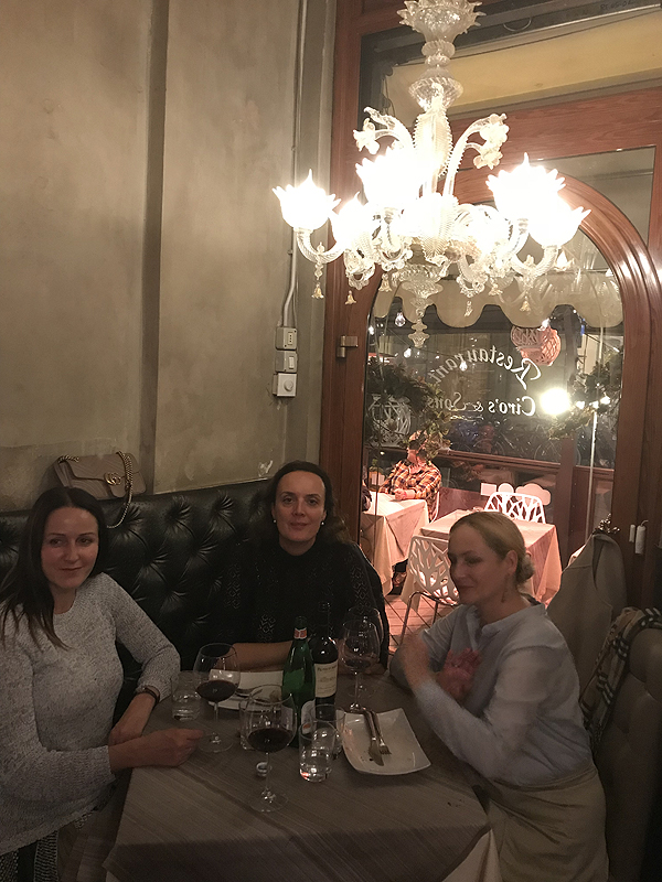 Vaikinas, esantis kairėje, administratorius, itališkai kalbėjo su geroku akcentu, taip minkštai, lyg būtų rusas, merginos sakė, gal ir lenkas. Dar nebaigę savo taurių, patekome į vidų. Jauku, apšvietimas vien nuo žvakių, šilta, gera. Jaukiai pavakarojam.