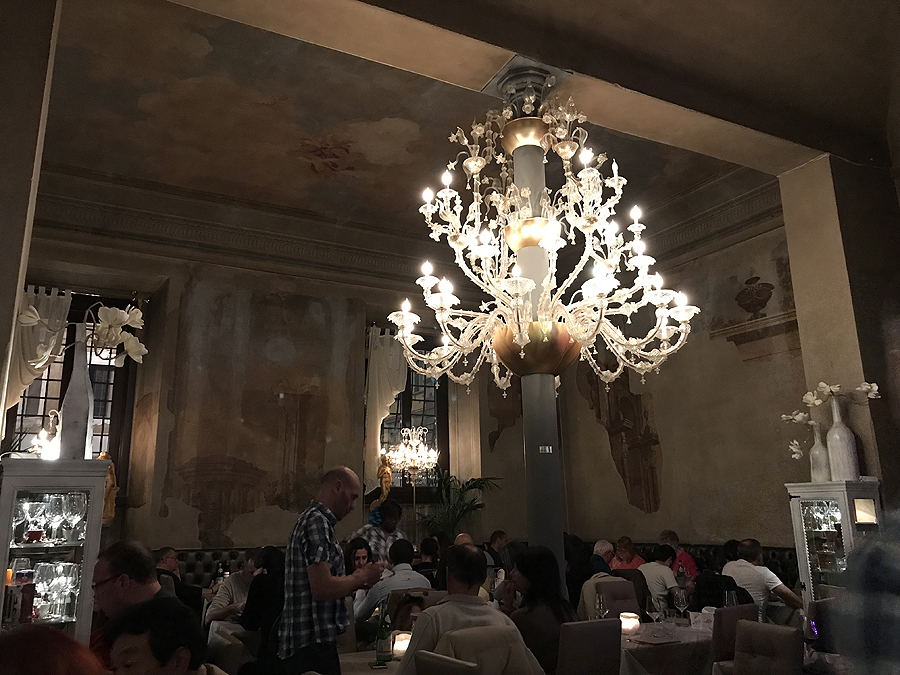 Pradedam juoktis - ant stulpo kabo itališkas skelbimas mokytis vokiečių kalbos - ką nesėkmingai darom trys iš keturių. Trise mūsų jos mokosi, nepabėgom :) pro langą šalia užmatom nuostabų sietyną jaukiame interjere. Tai restoranas http://www.ciroandsons.com/ su 4-viečiu staliuku prie lango! Jis laukė mūsų :)