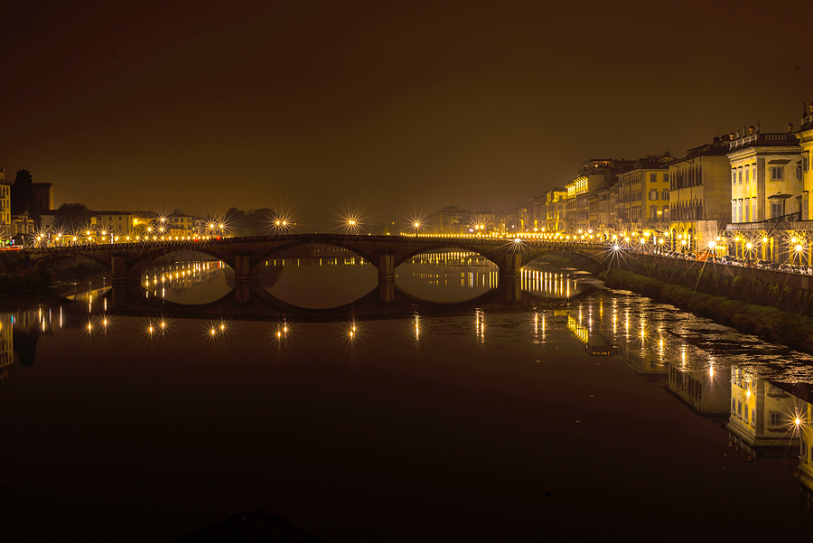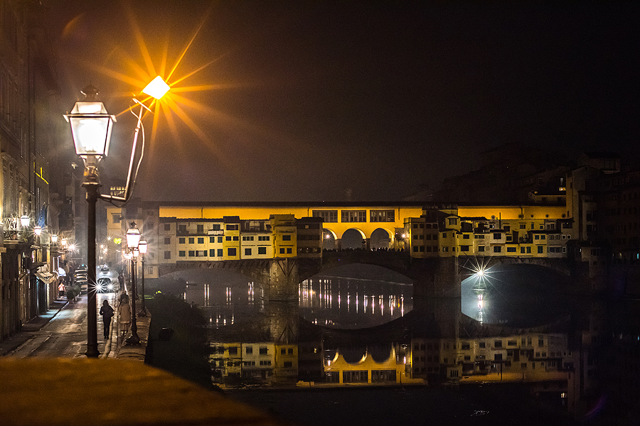 Pailsėję bariuke, nueiname iki Vechio tilto, pasižavim, pasifotografuojam, išbandom mano mylimą ilgą išlaikymą naktinei fotografijai pasidėjus kamerą ant tilto...