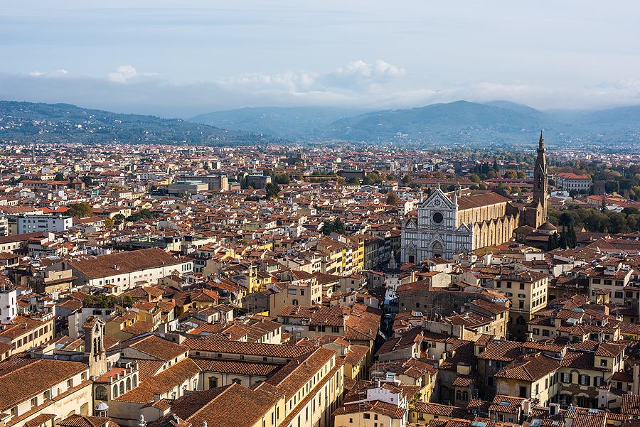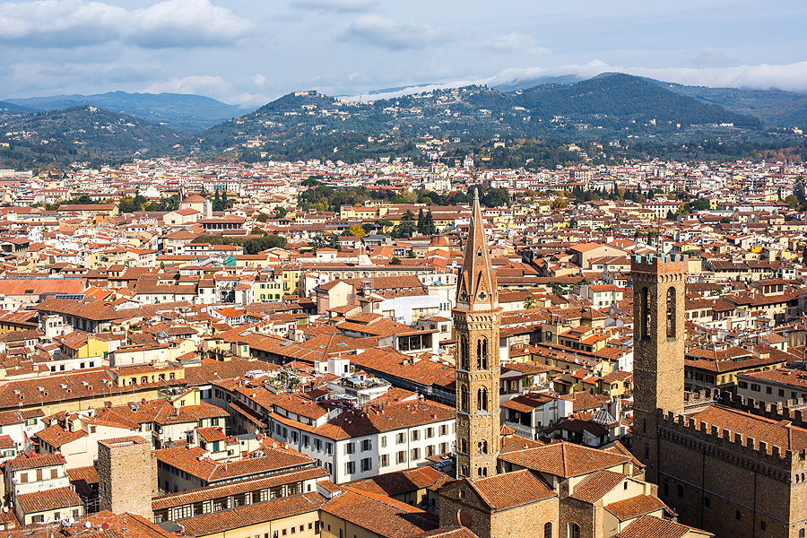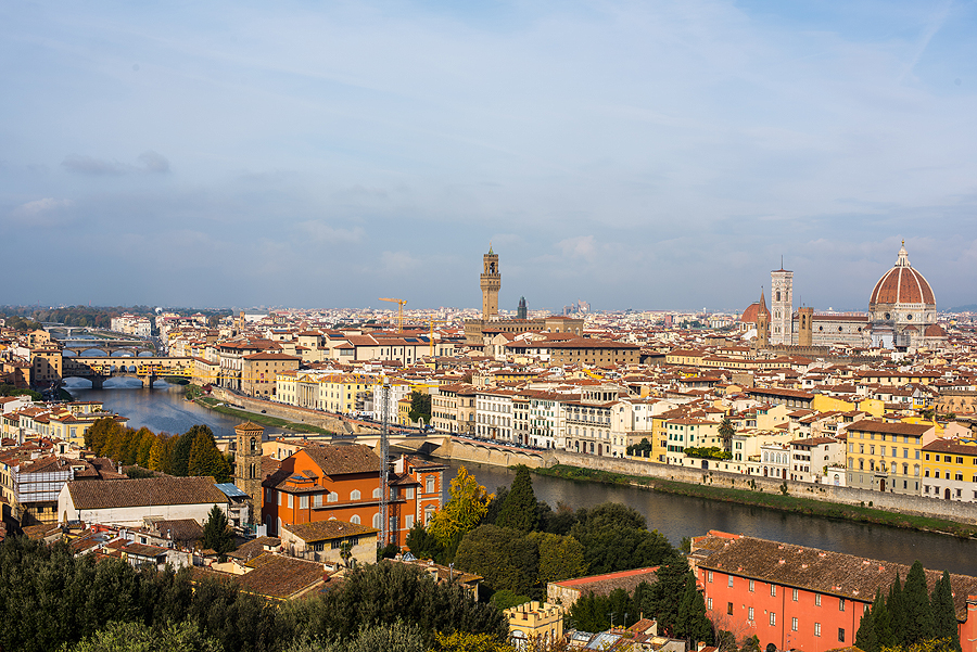 Pirmiausia einame į gražąją miesto panoramą Mikelandželo aikštėje.