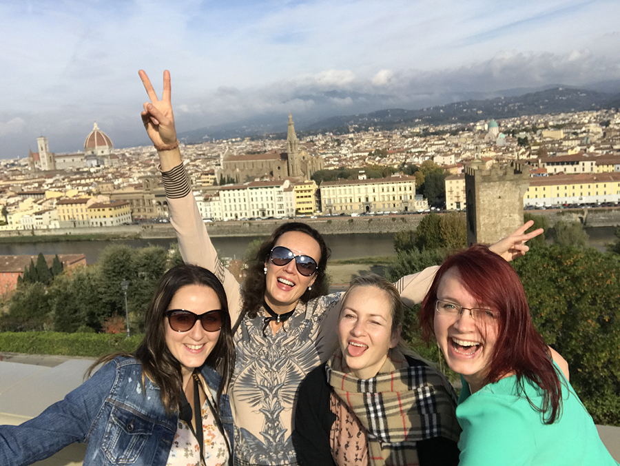 Taigi rudeniop, kai prireikė naujų ilgaaulių, pagalvojau - noriu juos nusipirkti Florencijoje. Kur kainos sąlyginai geros, daug vietinių meistrų ir vėl pamatysiu tąąąąą miestąąąą :) Gyvenu sąlyginai netoli - traukiniu pusdienis. Susirinkau kompaniją, ilgai neužtruko. Atsiklausus antrųjų pusių leidimų, susidarė 4 moterų kompanija - aš ir dar trys draugės. Traukinių bilietai nupirkti internetu lapkričio 3-5 dienoms, viešbutis užsakytas, intensyviai dalyvaujant visoms 4 keleivėms, Uffizzi galeriją užsakys viešbutis ir belieka laukti!!!
