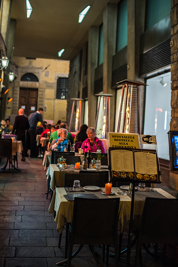 Viskas. Tikslas pasiektas, nuostabu. Justina toliau šturmuos Uffizi galeriją, o mano pasimatymas su kitomis dviem merginomis už 5 min apačioj, tad kaip pelenė puolu tekina per nesuskaičiuojamus laiptelius žemyn. Jos manęs laukia! Einame ieškoti užkąsti. Elena vakar nužiūrėjo neblogą mėsos restoraniuką-užeigėlę, einame ten. Ir ką, atėjus - žmonių minios!