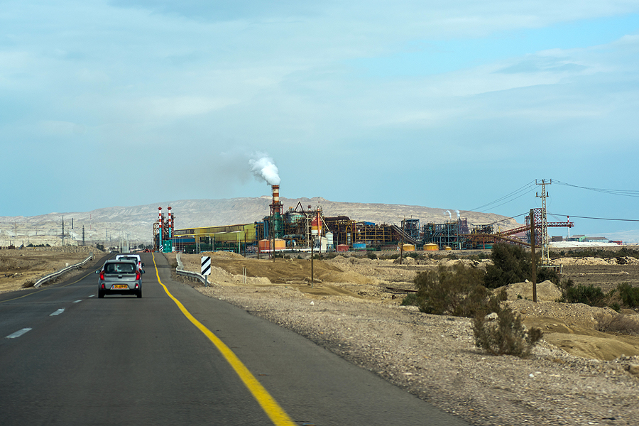 Važiuojant nuo Eilato, ir pradžioje šalia Negyvosios jūros daug gamyklų-kasyklų ir industrinių pastatų.