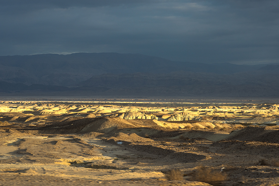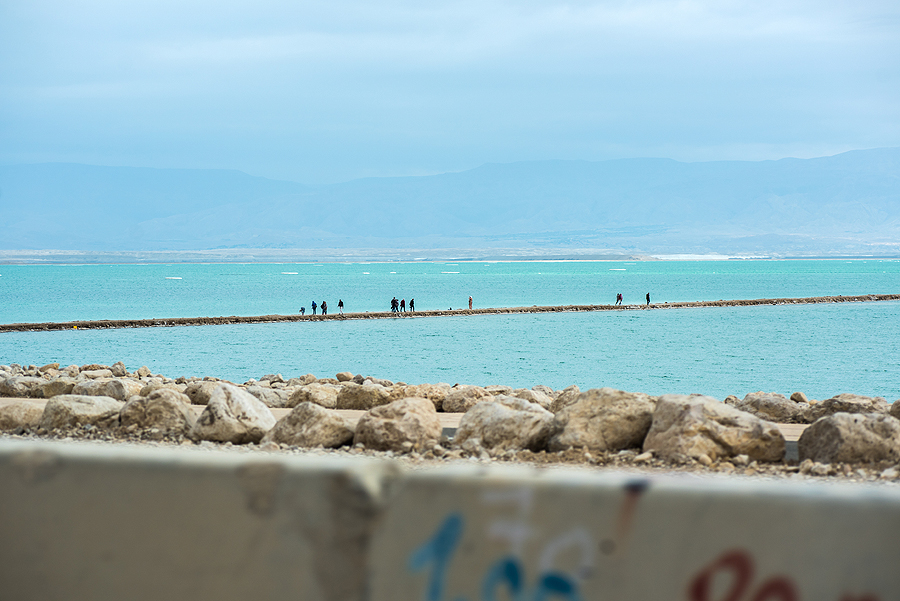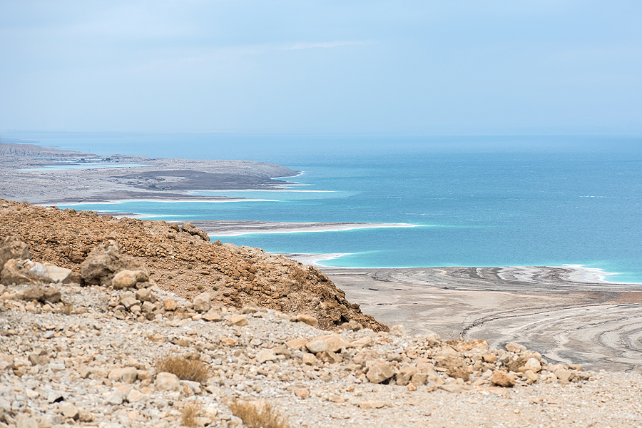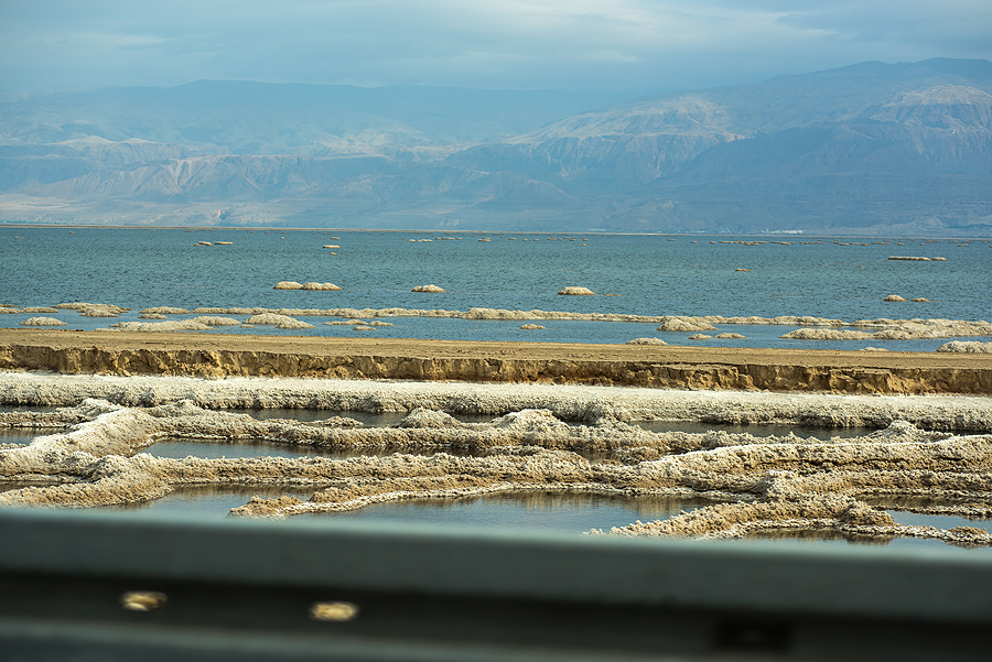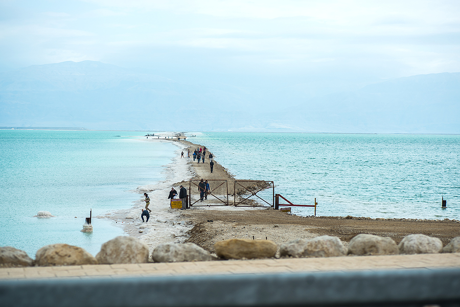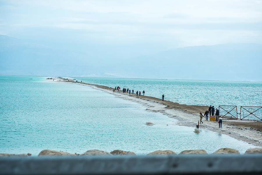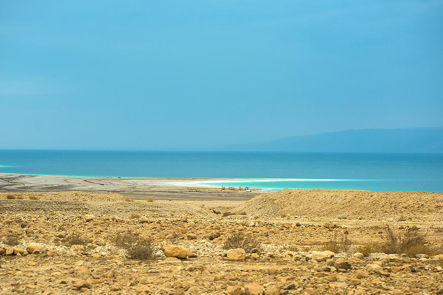 200km neprailgsta, pravažiavus įspūdingą baltų uolų - kalnų kanjoną, pasimato Negyvoji jūra. Sūraus vandens baseinai, viešbučiai, bet mes važiuojam iki Ein Ghedi.