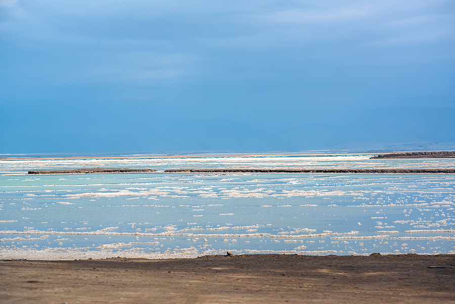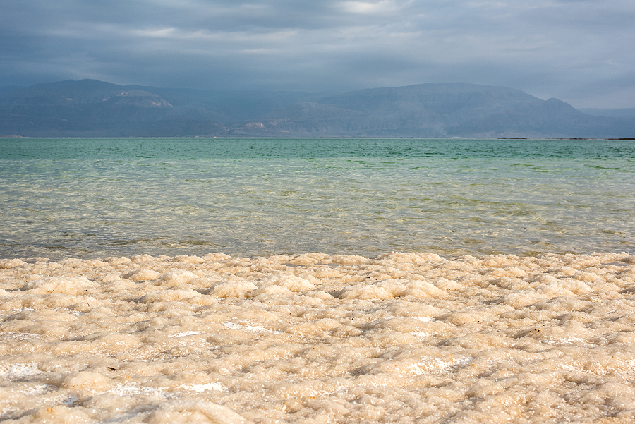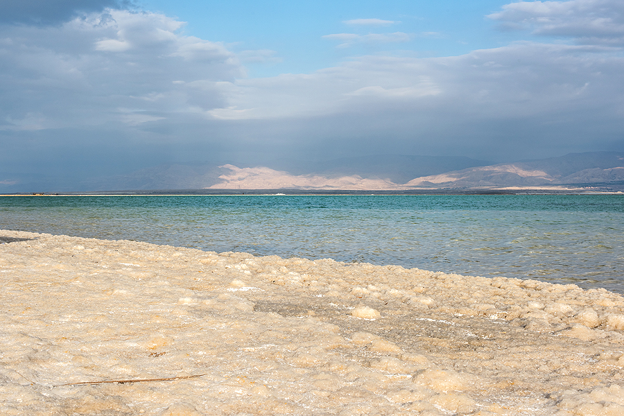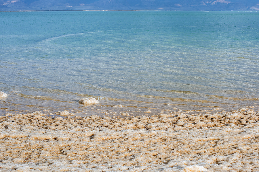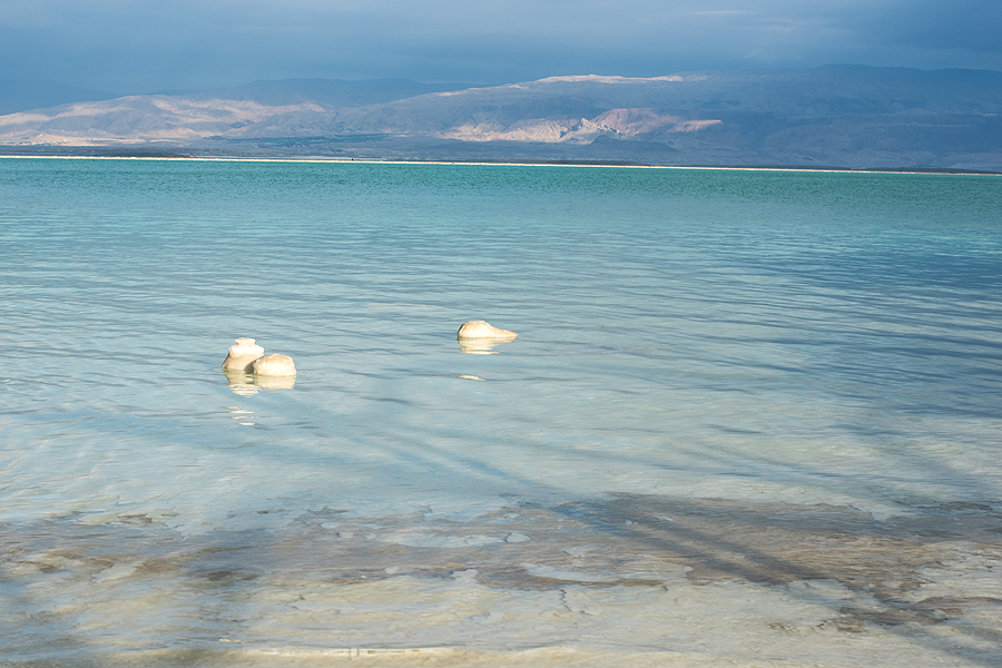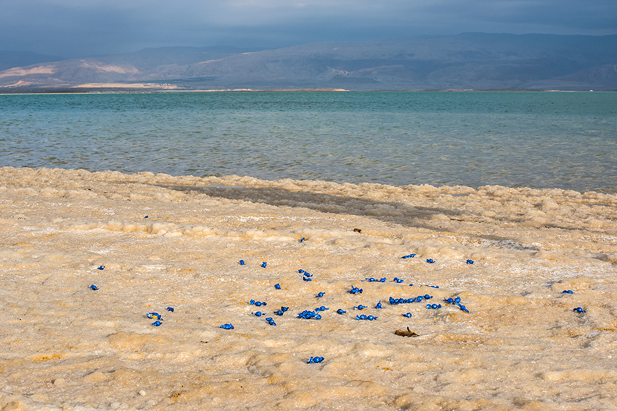 Pravažiavus sekliąją Negyvosios jūros dalį, gilioji jos dalis ne tokia žydra, druskos gabalų nebematyti, tik krantai šviesesni ir žydri, matyt druskuotas dugnas arčiau. Įmesiu foto iš interneto, rodančią, kaip Negyvoji jūra senka, bėgant metams.