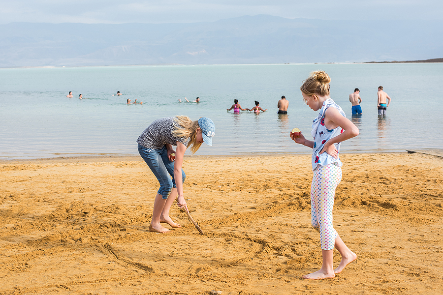 Stojam Ein Gedi Spa, sužinojęs kainą (260-270 šekelių šeimai), vyras pasibaisi ir išveža mus iš ten link Eilato, iki viešbučių miestelio Ein Bokek. Ten stojam, parkuojam mašiną (5šek/val) ir einam ieškoti miesto pliažo. Prieinam jį, tvarkingas, persirengimo kabinos, dušai, nedaug žmonių, kai kurie plūduriuoja! Matau, kaip vyras kalbina berniuką gultis, o jis nedrįsta.