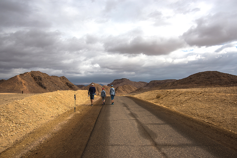 Einam toliau, pradžioje sunkiai sekėsi įvertinti atstumus, galvojom, viską apeisime patys. Ieškom skorpionų po akmenimis, apžiūrim skurdžią dygliuotą augaliją.