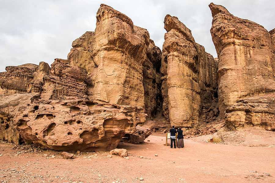 Parašiusi sakinį aukščiau, smigau dar iki 10 val! Paprastai niekada taip ilgai nemiegu. Ruošiamės, pavalgom ir varom į Timną. Važiuojant nuo Eilato pirmas baltas ženklas "Timna" veda į kažkokias neaiškias teritorijas, reikia sukti pamačius rudos spalvos ženklą su užrašu "Timna park", šalia ir milžiniškos egiptiečių statulos, kad niekas nepravažiuotų.
