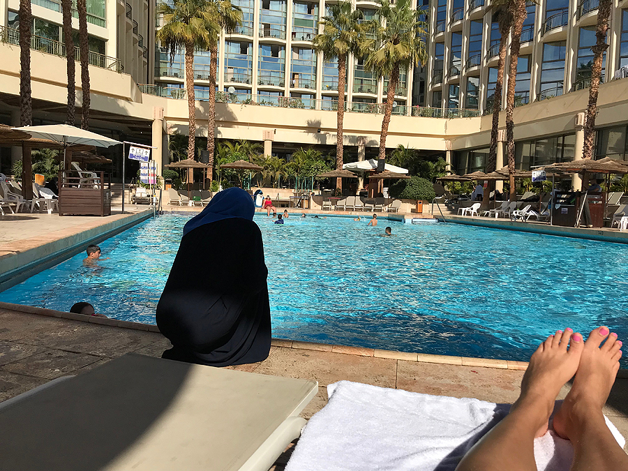 Hmm, Eilato panoramos fotkinimas nuo Eilato kalnų baigėsi fraze “tai tu nori visus tempt ten ir kankint?” Nu, ok, nenoriu, žadėjau palikt ramybėje. Einu degintis prie baseino ir prižiūrėt besimaudančių vaikų, kol vyras grąžins mašiną.