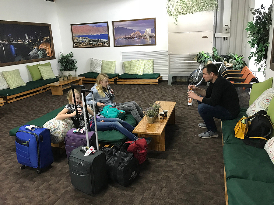 Perkam kavos, kolos ir sėdim ant turkiškų sofučių. Nuėjus į alkoholio ir suvenyrų parduotuvę paieškoti Negyvosios jūros pakabuko raktams, nemaloniai nuteikia dvi besiriejančios rusės pardavėjos. Garsiai ir ilgai.