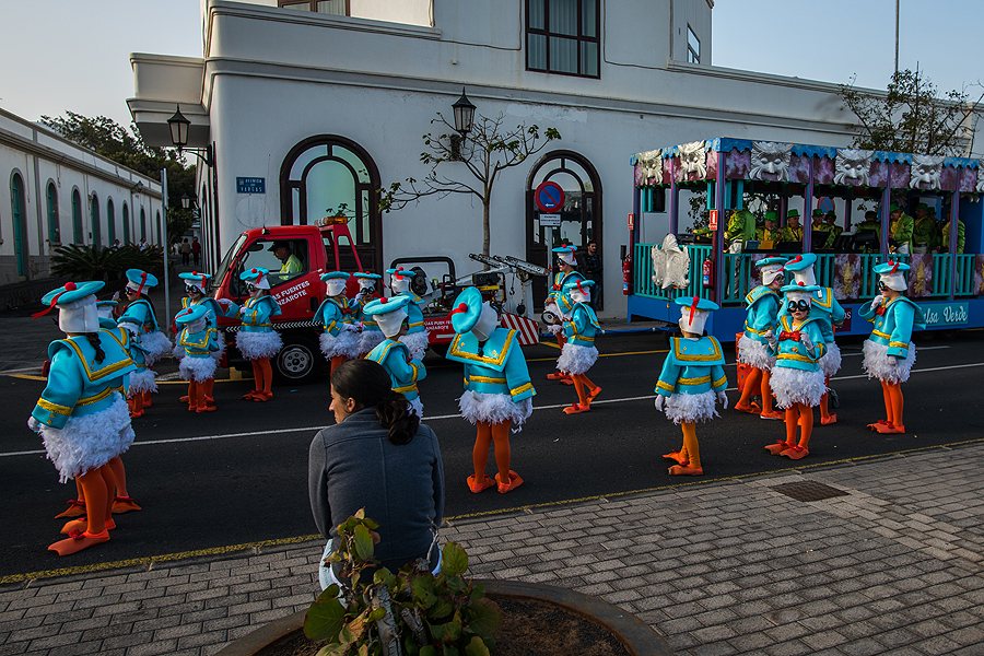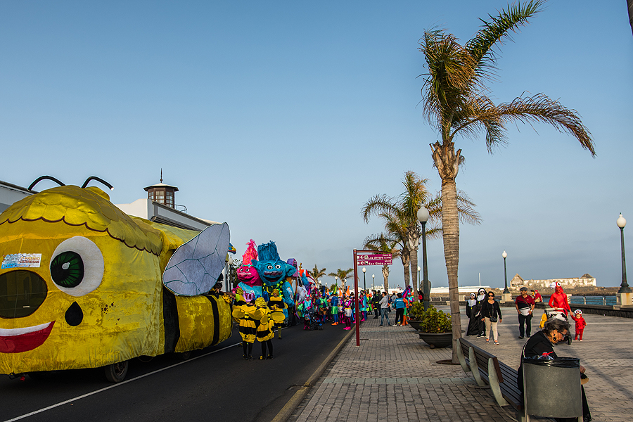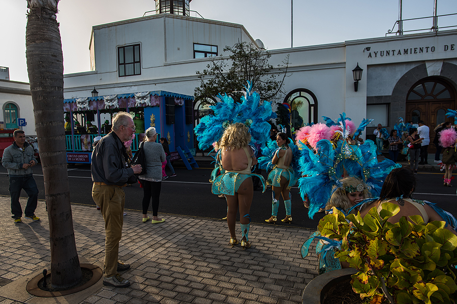 Žmonių visur aplink nedaug. Šalia Areccifė, Lanzarotės sostinė, mane vilioja... susirandam taksi ir į sostinę! Taksistas nekalba angliškai, kai pasakau, kad gyvenu Kosta Tegisė - jis "aa, Kosta Tegis"? Kaip gražiai taria! Norėčiau mokėti ispaniškai. Pasirodo, šiandien iki centro jis mūsų nedaveš, nes jis uždarytas - vyksta Užgavėnių paradas!