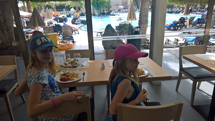 Kitą dieną laukėm naujojo kambario iki pietų, tad prabuvome viešbutyje. Man vis degė padai kur nors toliau išeiti, į gretimą miestelį Costa Teguise, vaikai vis stabdė ir sakė, mes norime viešbutyje būti. Nemokami spalvoti gėrimukai, ledai ir t.t. Į baseiną nebelindome. Turėjau planą, kaip baseiną padaryti naudojamą, tam reikėjo nuvažiuoti iki Decathlon'o. Kuris buvo visai šalia Areccifes - Lanzarotės sostinės.