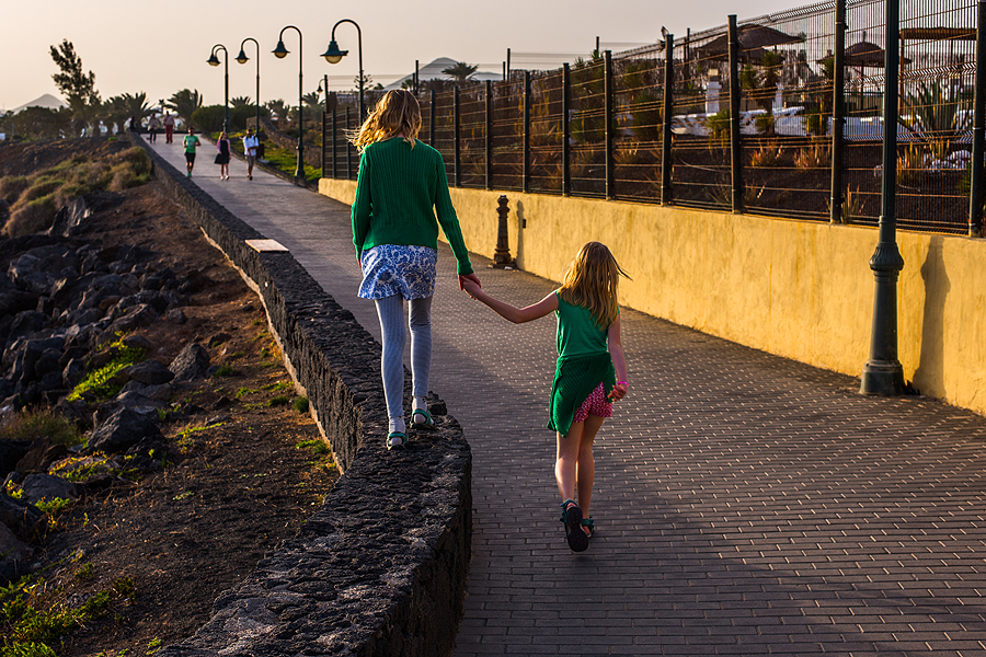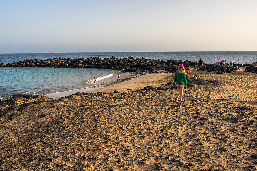 Kiekvieną dieną buvo mamos pusdienis, kai einam lauk iš viešbučio ir vaikų pusdienis - viešbutyje. Šios dienos "mano" dalis - vakarinis pasivaikščiojimas Costa Teguise - artimiausiame miestelyje, iki jo mums 3km gražia pajūrio promenada.