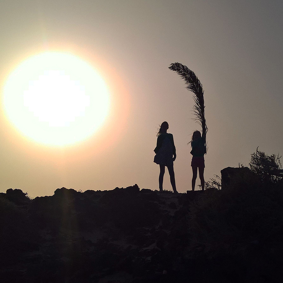 Ši foto - viena mėgiamiausių iš kelionės. Saulė nuostabiai didelė ir taip žemai... Mano merginos karstosi.
