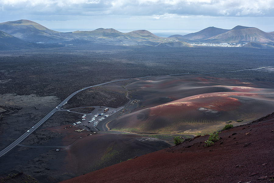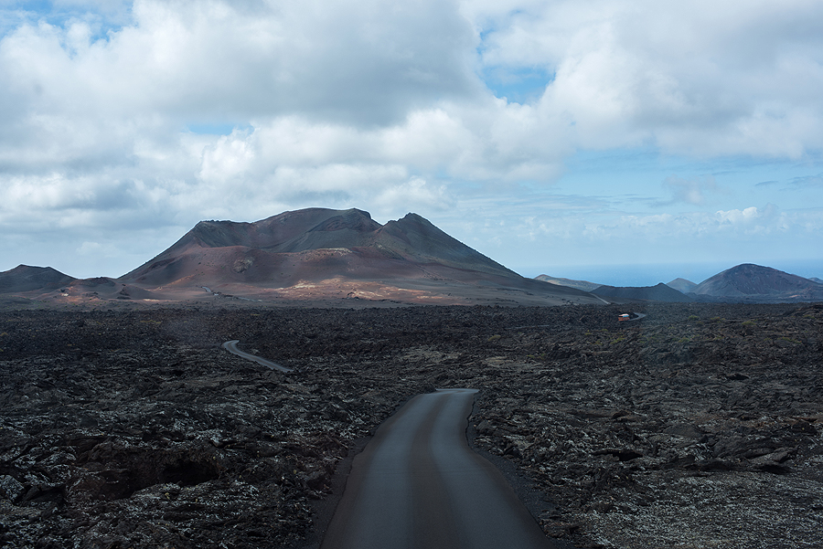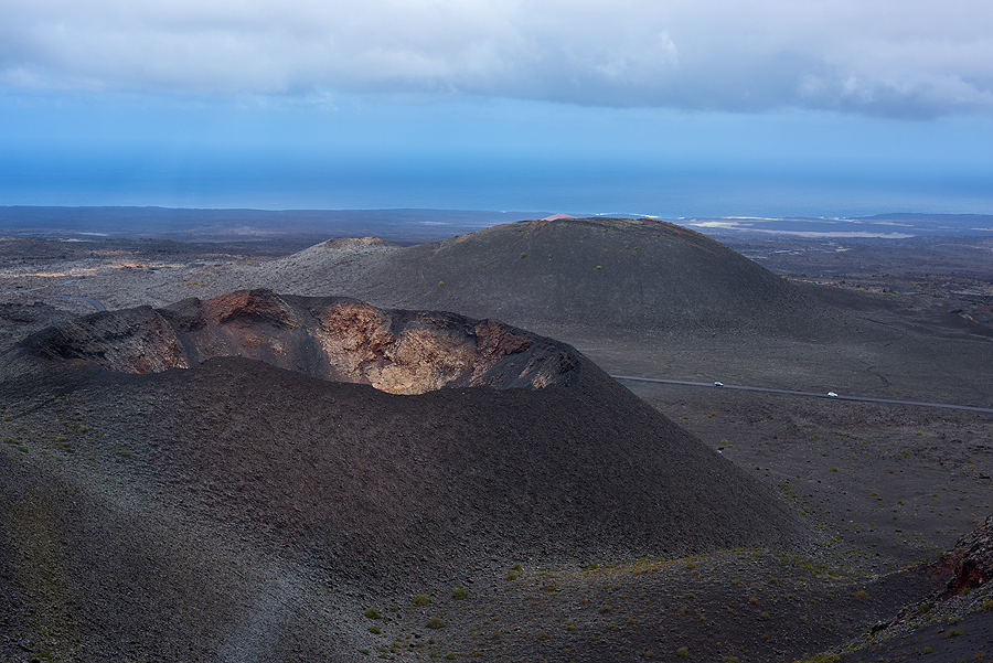 Vulkanų dydis įspūdingas, palyginimui šalia keliu važiuoja kelios lengvosios mašinos.