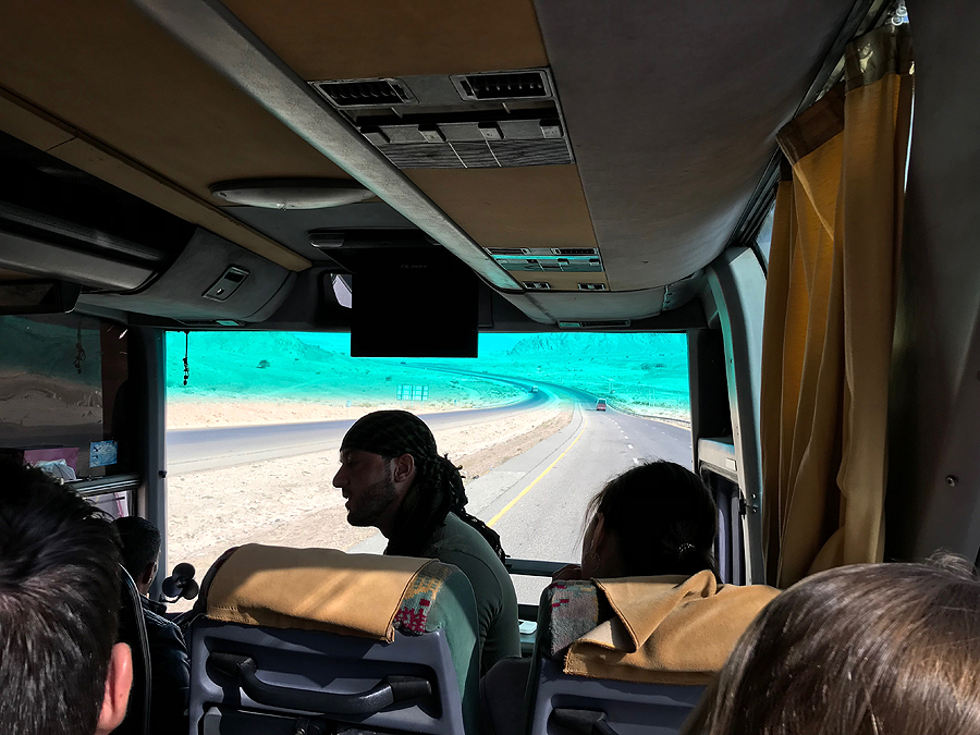 Atgal grįžtam per 2,5 val, tamsu, nestojam nei Aqabos turguose, nei dykumoje, kaip žadėta programoje - nespėjom. Autobuse pjauna miegas, nusikaliau, o šalia girdžiu kaip porelė pasakoja kad 20km suvaikščiojo per dvi dienas Petroje, iki vienuolyno nuėję buvo. Važiuojant vakare per dykumą tamsu, jokio apšvietimo kelyje.
