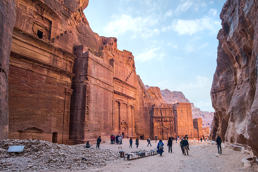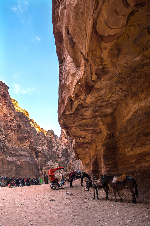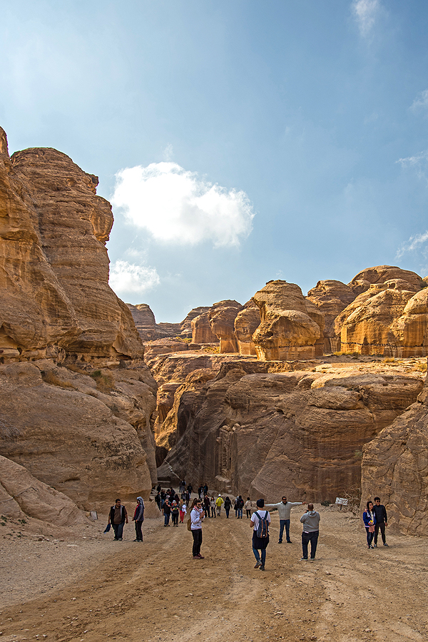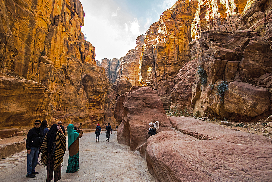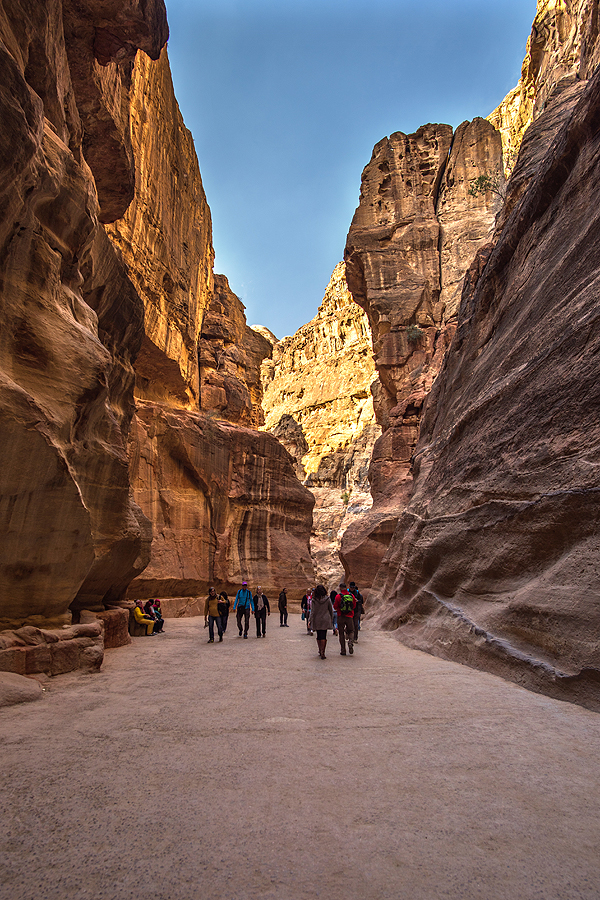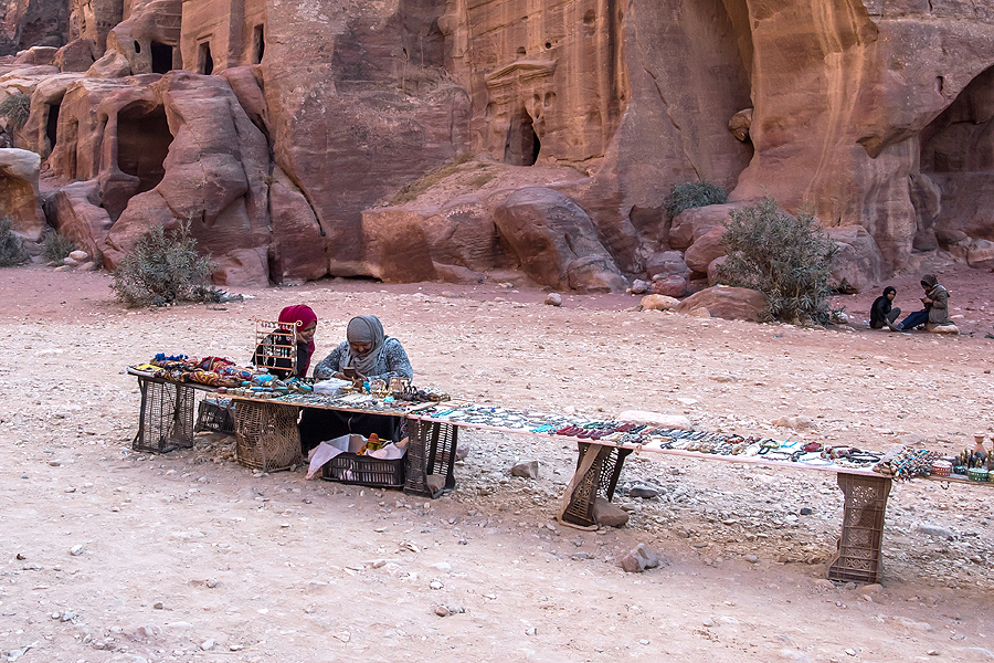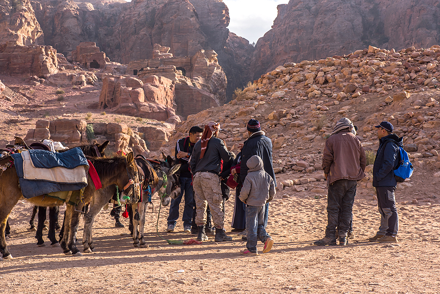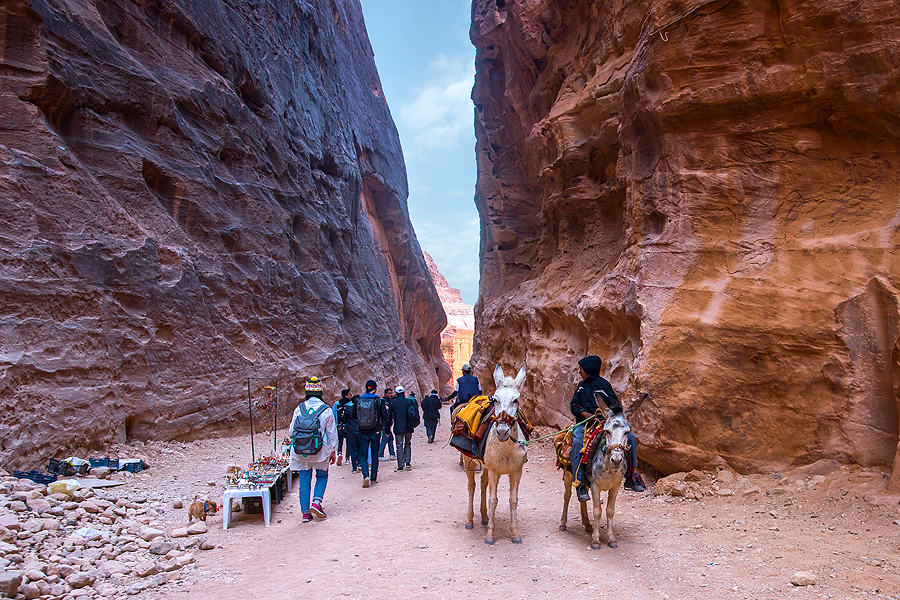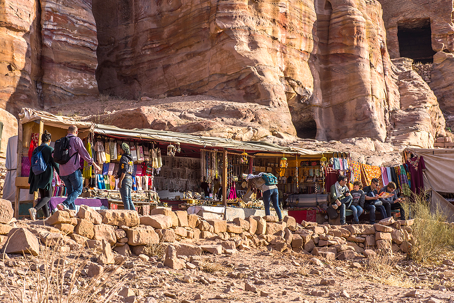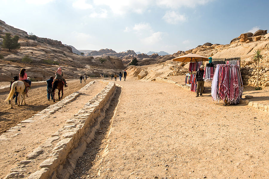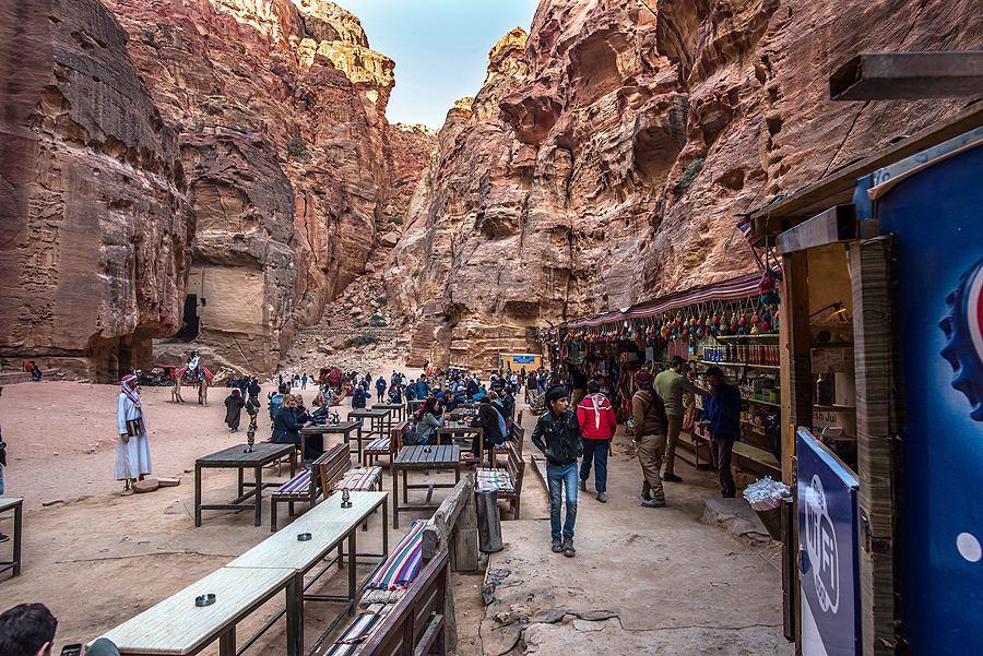 Ir dabar jame karaliauja vietiniai beduinai, kuriuos Jordanijos valdžia prieš 30 metų iškeldino iš Petros miesto į civilizuotas gyvenvietes, jie pardavinėja suvenyrus, zuja pirmyn-atgal visu taku, vežiodami turistus arklių traukiamomis karietaitėmis, kupranugariais, asiliukais.