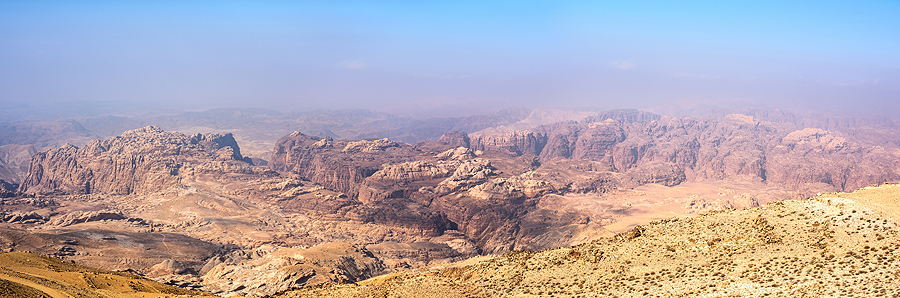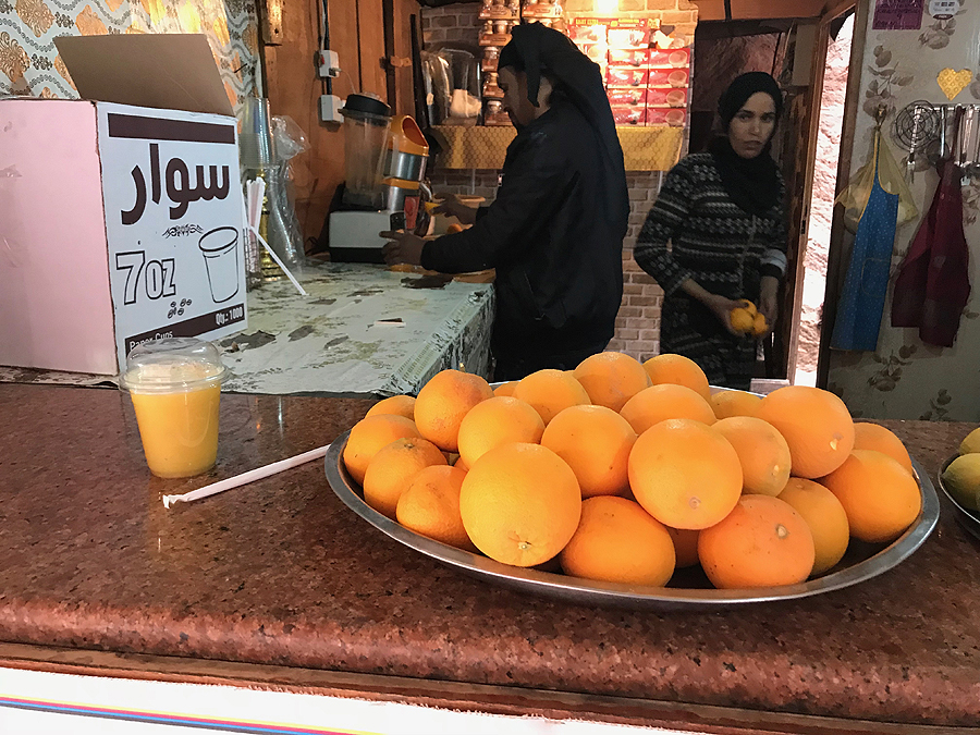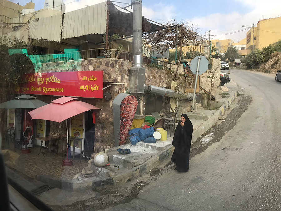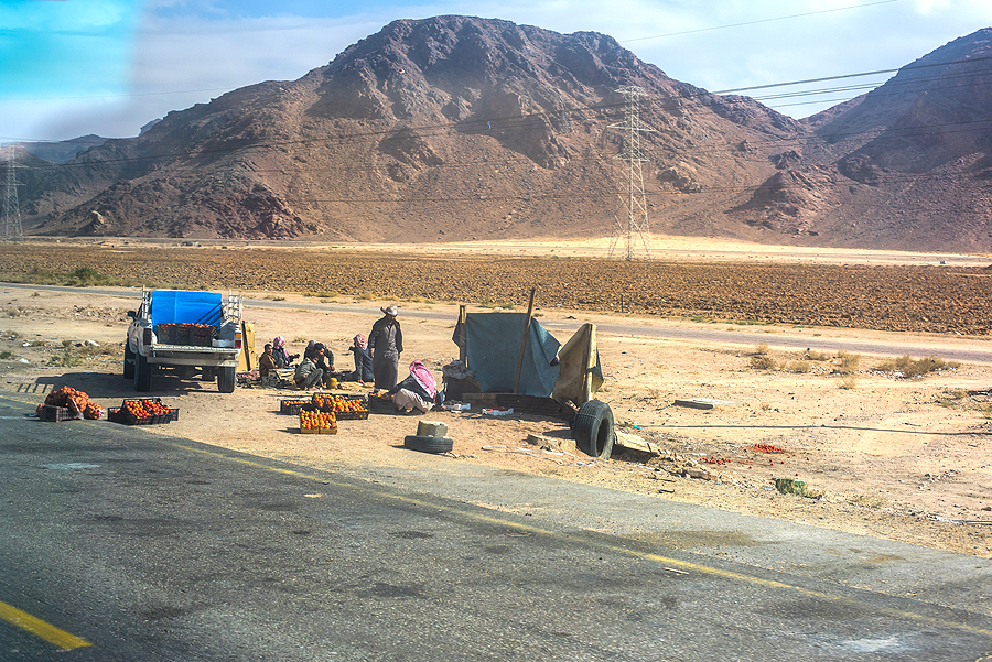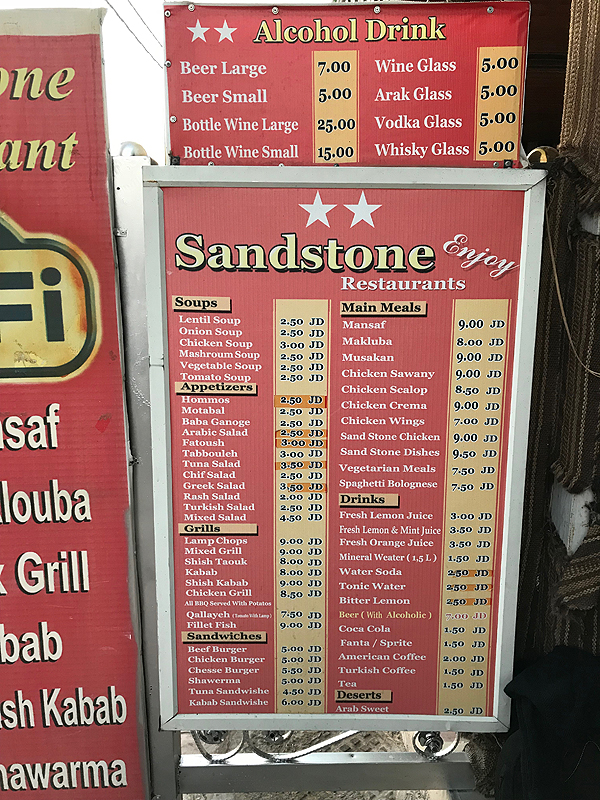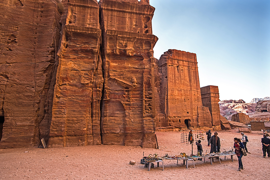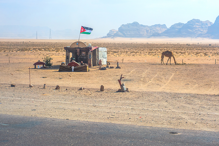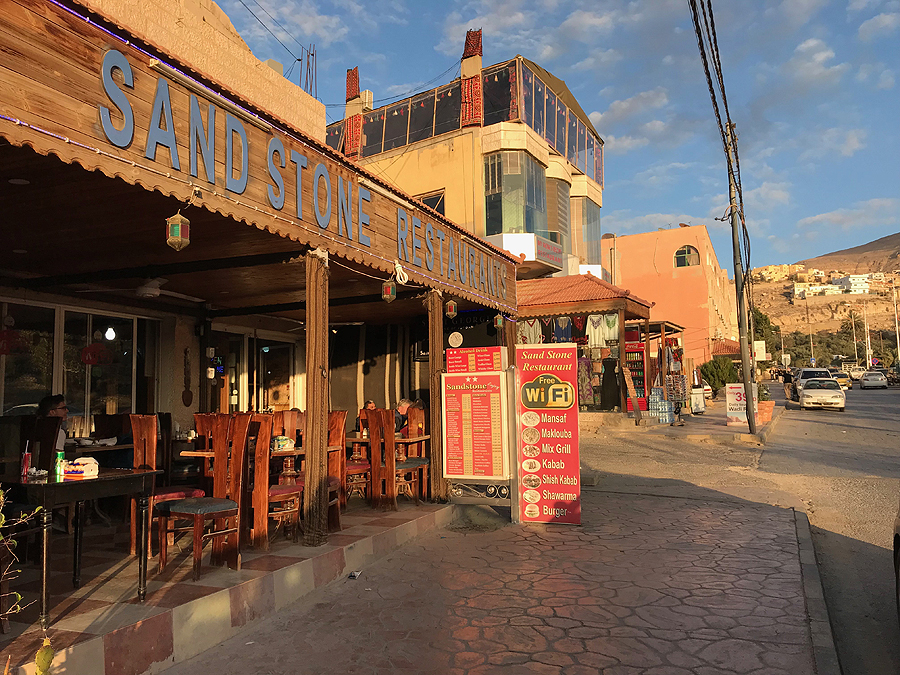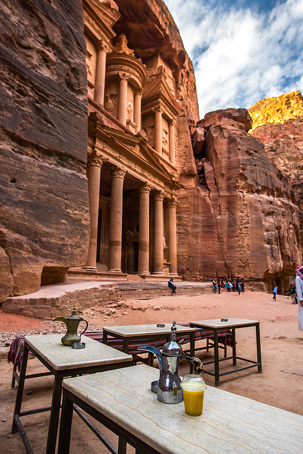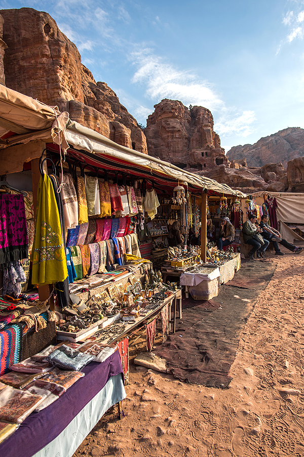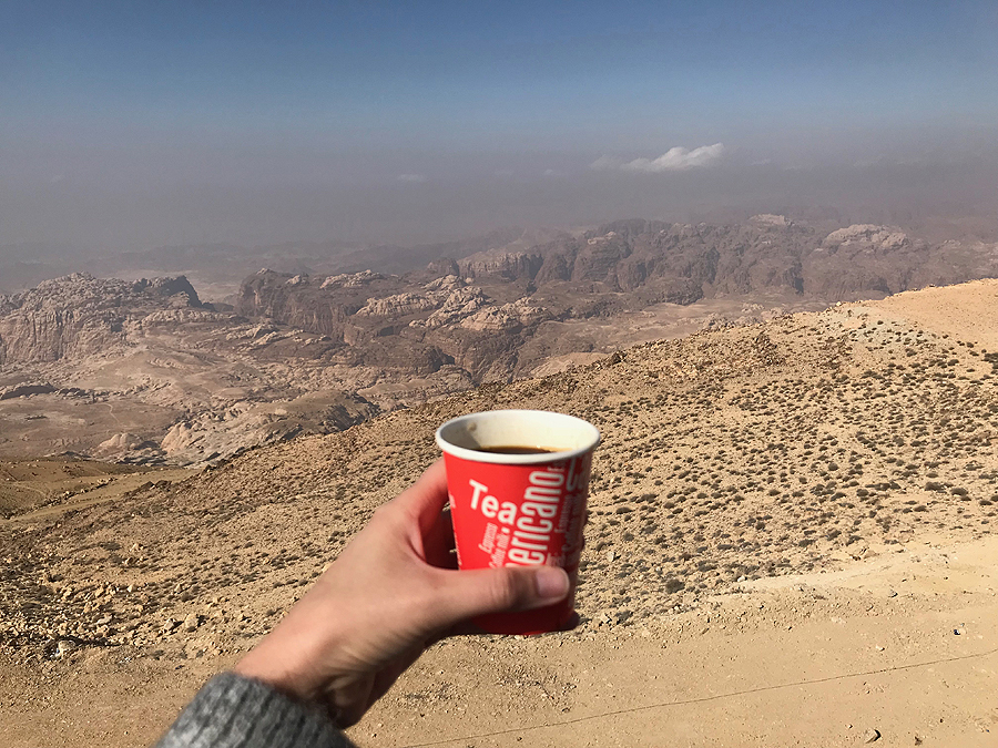 Stojam prie bariuko-užeigėlės su Petros miesto panorama iš viršaus ir turim galimybę fotografuoti, kiek telpa. Bariuke vaišina maistais, o kavą turim pirkti už dinarą ar mažiau, neįstrigo...Nusiperku kavos, ji specifinio, bet malonaus skonio, su kardamonu. Ją darė tokia moteris kaip iš filmų, su skarom, juodom akim ir nekalbanti nė žodžio angliškai, užtat dantys balti balti, šypsojosi. Užlipu ant stogo, padarau keletą kadrų. Viduje - pilna įvairiausių suvenyrų, krūvomis, nuo kilimų iki mažų statulėlių. Bet aš jau viską turiu.