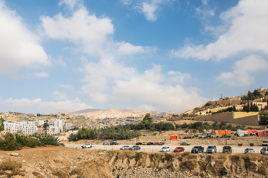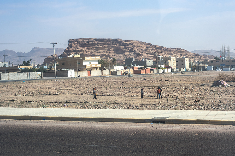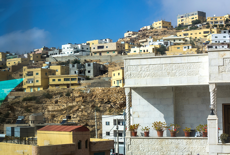 Tada sukam ratus ratus ratus ir leidžiamės žemyn į "duobę", kur yra Wadi Musa - miestelis šalia Petros. Aplink viskas apleista, šiukšlių, griuvėsių, moterys - juodi šešėliai nuo saulės nublukusių namukų fone.