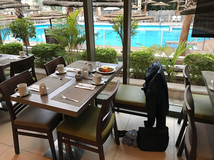 Programoje toliau pietūs bare, bet juos mielai būčiau praleidusi, nieko ypatingo, mėsa troškinta, daržovės troškintos, žalios salotos, ryžiai su vištiena, įvairūs padažai prie arabiško paplotėlio. Perku alaus ir peržiūriu nuotraukas.