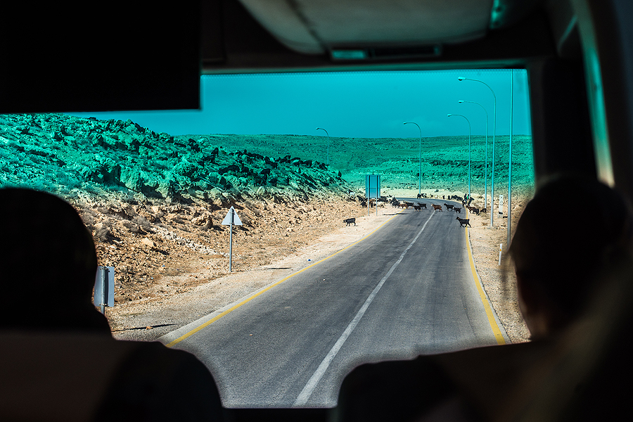 Pavalgius išeinu laukti transporto. Tiksliai 7.30 kaip Šveicarijoj, atvažiuoja mikroautobusiukas. Viduj sėdi olandų šeima, persimetu keliais žodžiais su šeimos galva. Jau pagalvoju, kad taip ir važiuosim, cha :) Mus nuveža į susirinkimo tašką degalinėje, ir pasako, kad šiandien Petrą lankys 80 žmonių kartu su mumi. Susėdam į du autobusus ir prie sienos išlipam - sieną pereisim pėškom ir sėsim į kitus autobusus, su Jordanijos numeriais. Tokios ceremonijos dėl to, kad į Jordaniją negalima įvažiuoti su Izraelio numeriais, jei mašiną išsinuomojote Izraelyje ir norite aplankyti Jordaniją, teks ją palikti pasienyje ir sėsti į taksi.