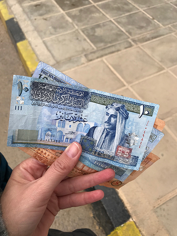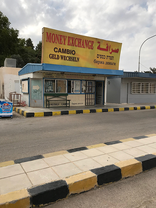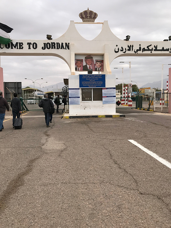 Sienos perėjimo procedūros ilgos, nuobodžios, bet personalas nusiteikęs geranoriškai, tikrinami bagažai, laukiam ilgose eilėse. Pasirodo, mano pasas yra biometrinis. Nežinojau to. Apsiforminus eilinėj eilėj, keičiu šekelius į dinarus, perku suvenyrus - raktų pakabukus už juokingą kaina 2dol arba 1 dinaras. Kitas išvis uz 4 šekelius, kokia nori valiuta gali mokėti, Jordanijos suvenyrų kioskelis priima viską. Dinaras beveik lygus eurui.