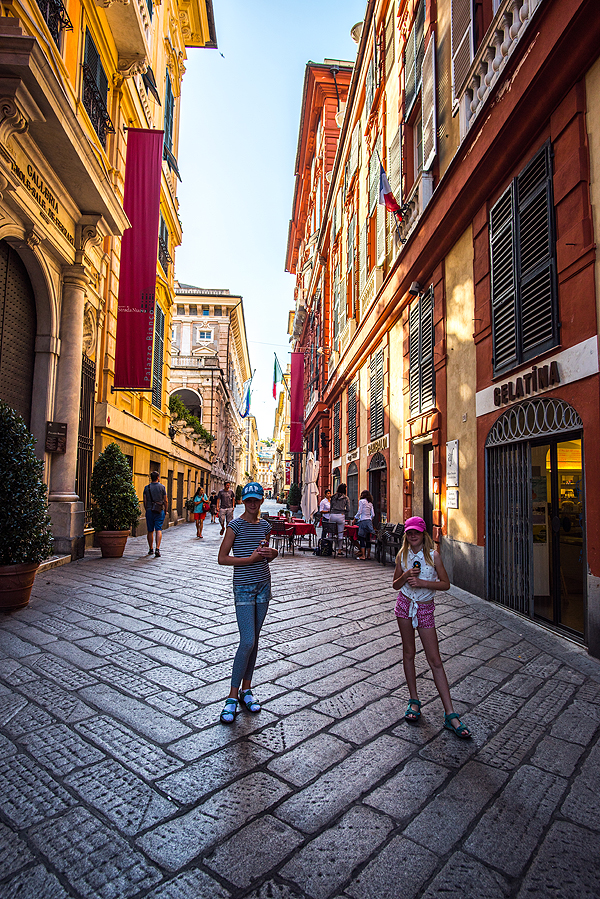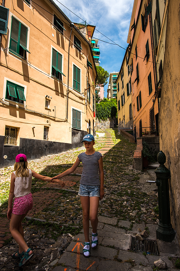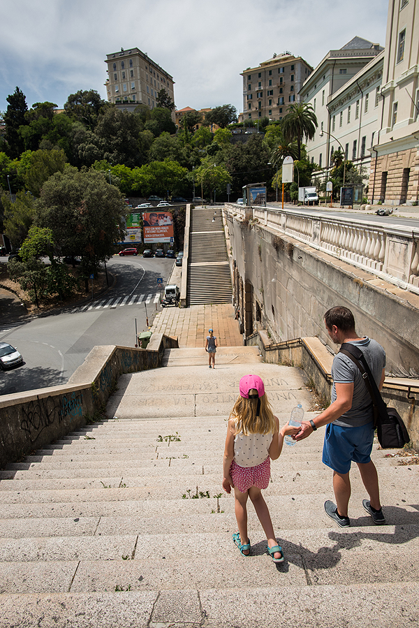 Genuja - tai krūva į kalną kylančių daugaaukščių, kai kurie puošnesni, kai kurie paprasti.Lipam į kalną, kur kažkur netoli turėtų būt centras. Norisi vėl pamatyt ružavą fontaną, gal prasieit pro parduotuves... malamės, ir jaučiu, kad miesto centras liko kažkur anapus.